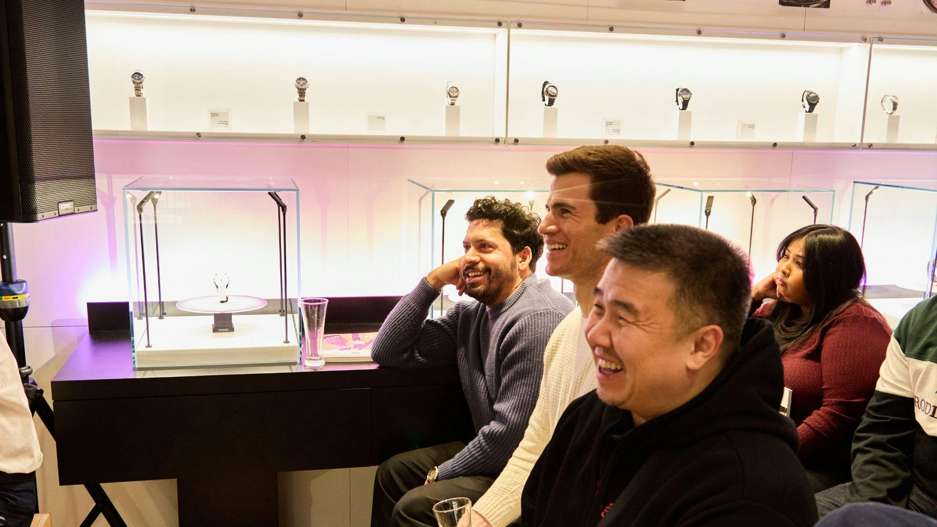 楽しい時間には終わりがあるもので、この夜も熱気に包まれたコミュニティの面々が夜の街へと繰り出すなか幕を閉じた。締めくくりのQ&Aセッションでは、ひとりの参加者が立ち上がり、10年間愛用してきた自身のエコ・ドライブがいかに高い精度を保ち続けているかを語る場面があった。そこに質問はなく、ただブランドへの純粋な熱意があふれていたのが印象的だった。この50年でシチズンが成し遂げてきた数々の成果を踏まえれば、あらゆる光を力に変えるエコ・ドライブとそれを愛する人々にとって、これから先にも明るい未来が待っているに違いない。