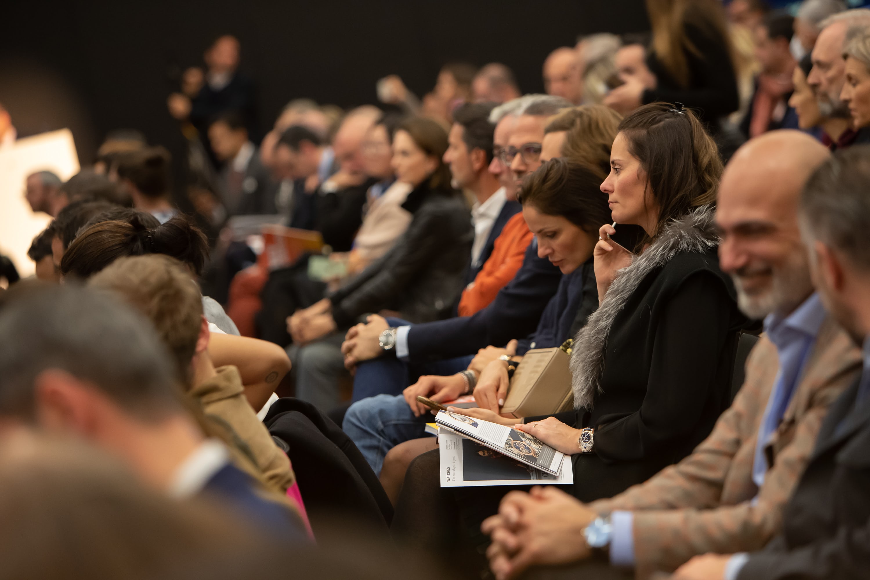 展示会やオフ会とは異なり、オンリーウォッチには選ばれしハイレベルなブランドのエグゼクティブや著名なコレクターが主に参加している。周りを見渡すと、いたるところに時計メーカーや著名人の姿があった。ローラン・フェリエ(Laurent Ferrier)氏は通路側に座り、私の席の近くには彼の娘さんの隣に座ったカリ・ヴティライネン(Kari Voutilainen)氏や、ドゥ・ベトゥーンのCEOであるピエール・ジャック(Pierre Jacques)氏の姿が見えた。F.P.ジュルヌ自身も前の方に座っていた。また、チャペック社のCEOであるザビエル・デ・ロックモーレル(Xavier de Roquemaurel)氏の顔には、寄付金が20万スイスフラン(約2290万円)を超えたとき笑顔が浮かんでいた。