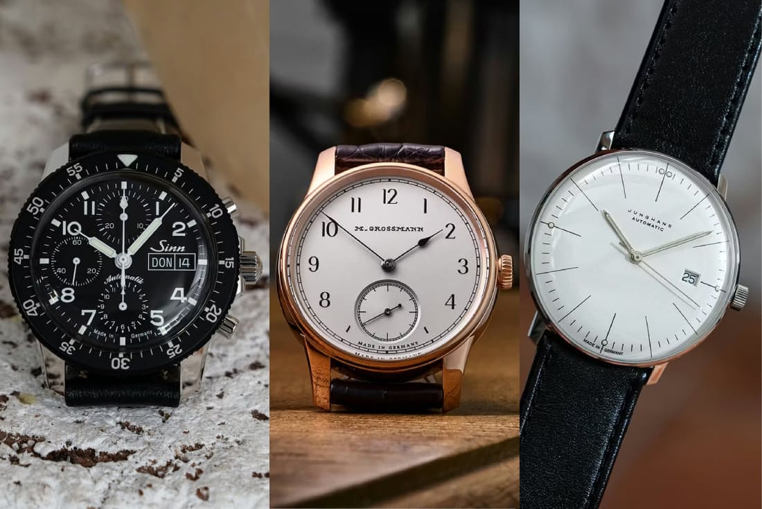 異なるブランドの時計だが、どこか共通した美意識を感じさせるデザインを纏う3本のドイツ時計。
