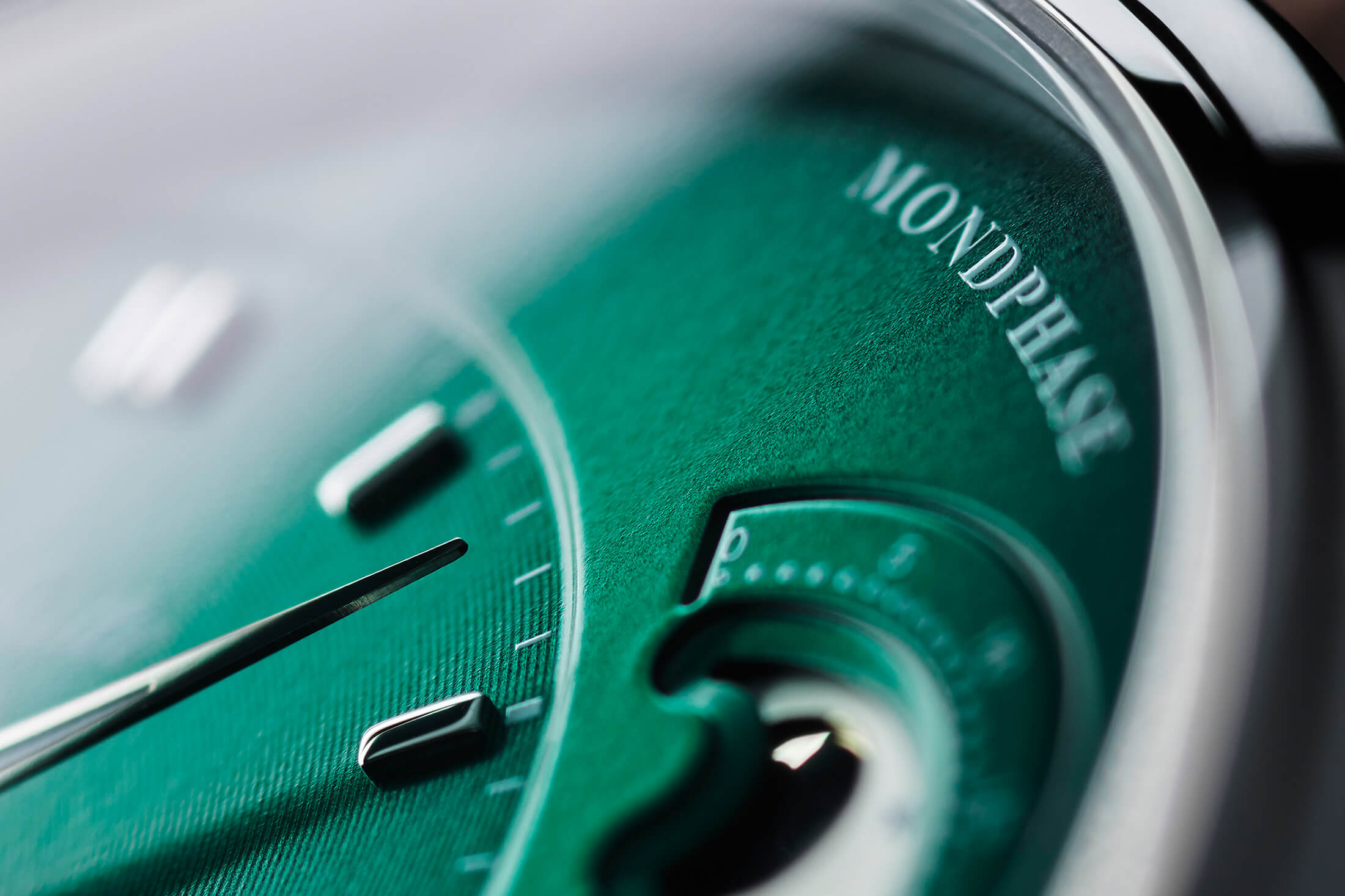 新作のパノマティックルナにおいては、同社の工房の周りを囲うようにして立つモミの木からデザイナーがインスピレーションを受け、鮮やかなグリーンとして表現。ドイツ・フォルツハイムにある自社の文字盤ファクトリーにて、熟練した職人たちの技術を結集して文字盤を製造している。