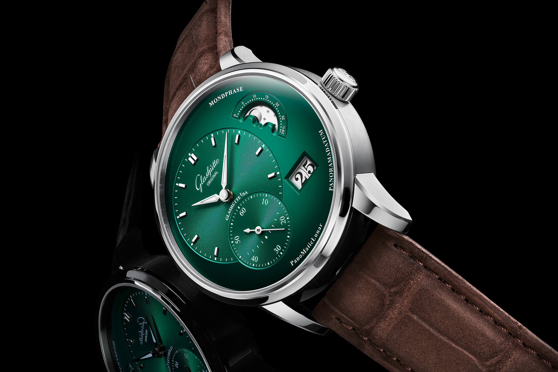 2011年にリデザインされたグラスヒュッテ・オリジナル人気のモデル、パノマティックルナに深みのあるグリーン文字盤を採用した新作が登場した。