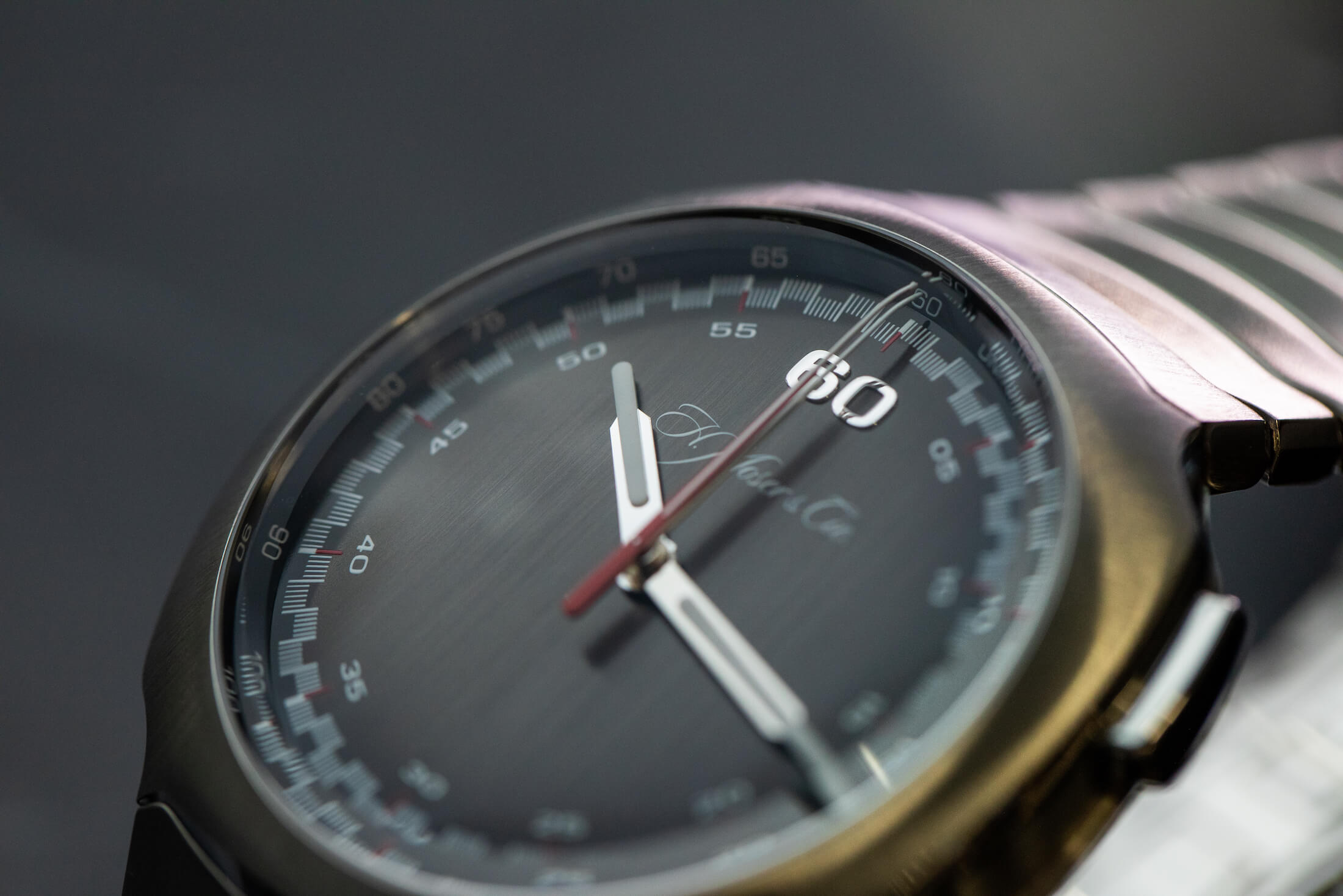 H.モーザーが名乗りを上げた、ステンレススティール製のスポーツウォッチ市場で、このストリームライナー・フライバック クロノグラフ オートマティックは一定のインパクトを残した。アメリカ本国のジャック・フォースターによる記事でその詳細は取り上げたが、日本でも実機を撮影する機会に恵まれたのでそのディテールを見ていきたいと思う。