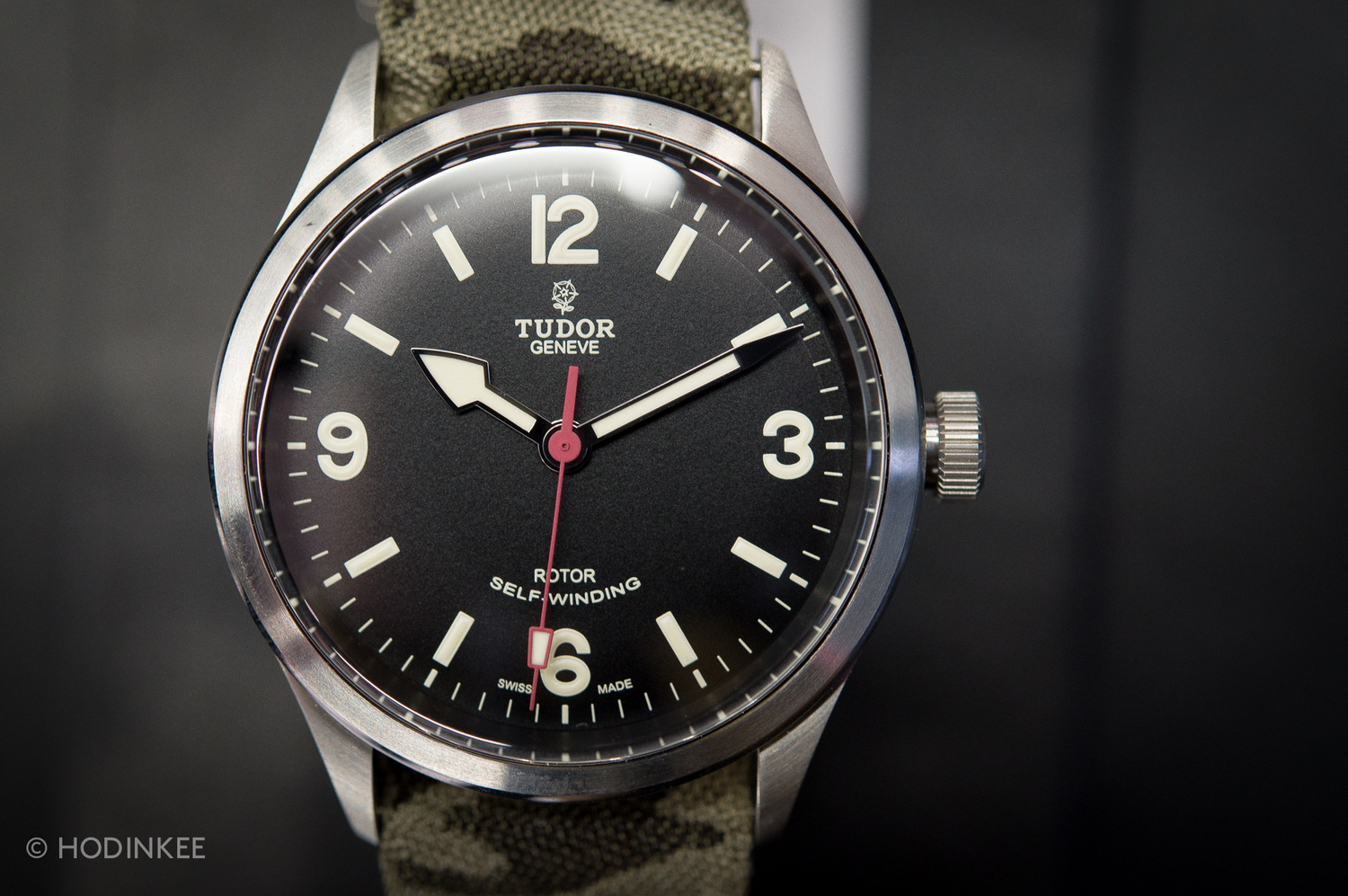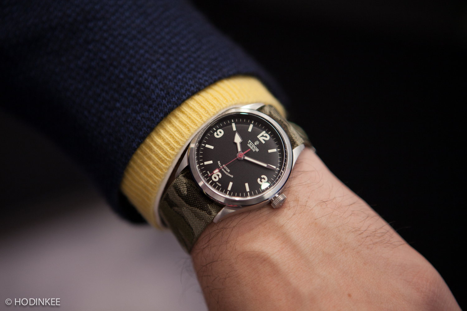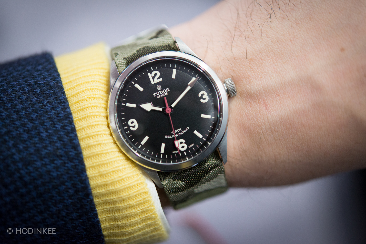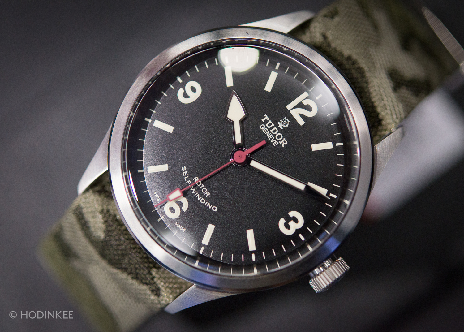 チューダーの時計に付属する全てのファブリックストラップと同様に、この新しい迷彩ストラップもまた、フランスでバチカンのために法衣を織っている人々が織り上げたものだ。NATOスタイルの別の迷彩ストラップをどこかで見かけたことがあるかもしれないが、それらの模様はナイロン生地にプリントされているのに対し、こちらの模様は織り込まれている。