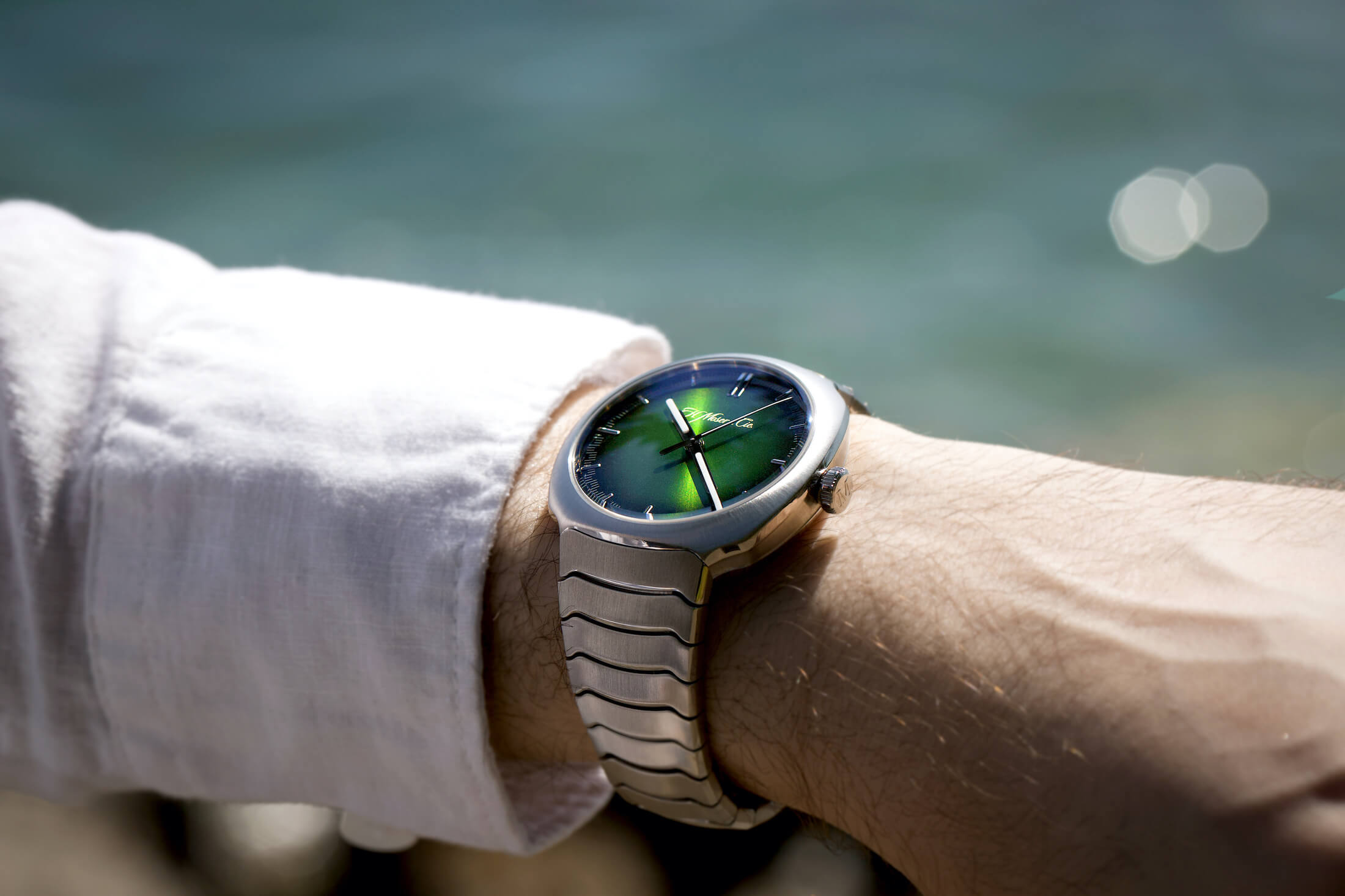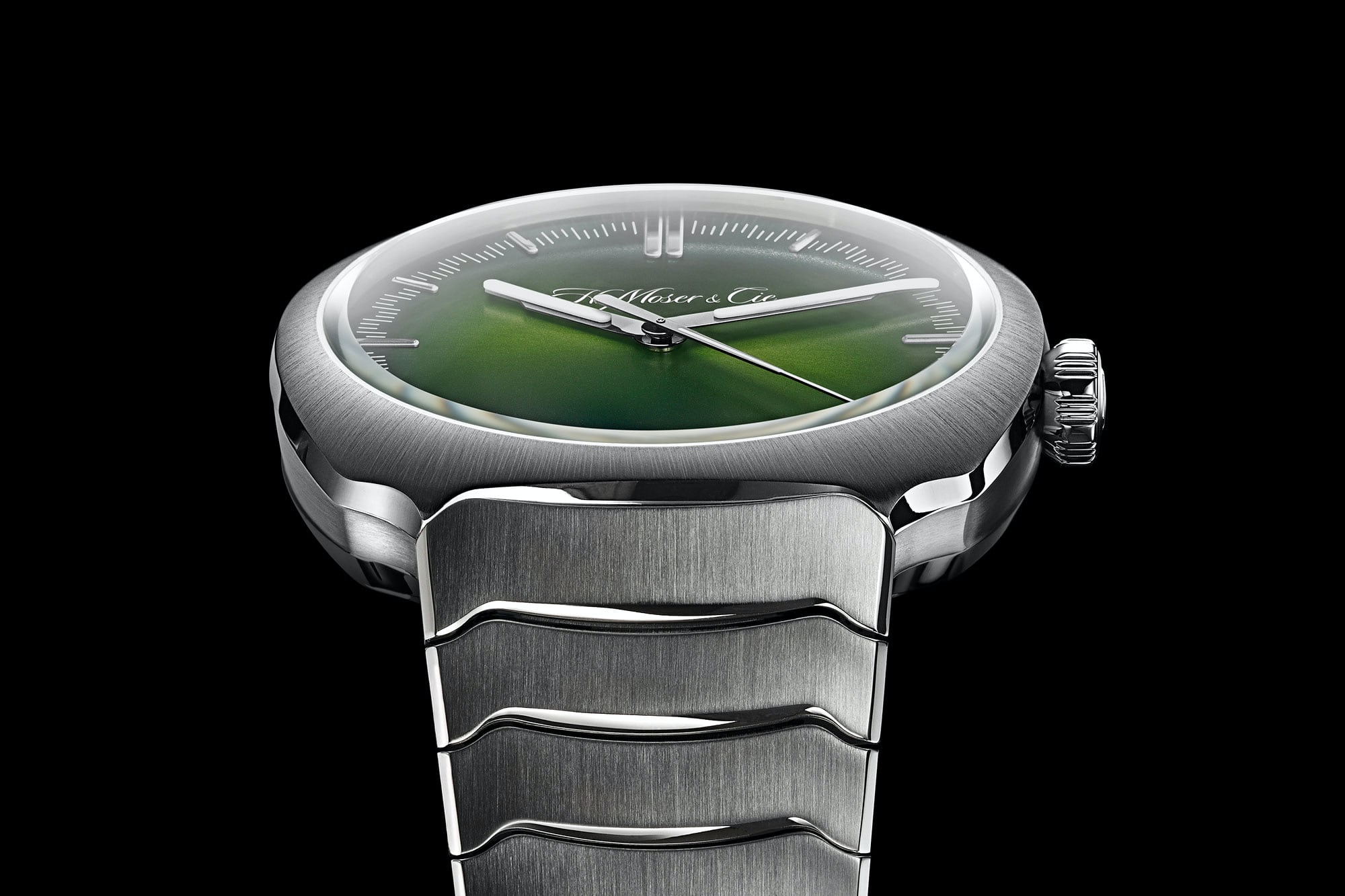 実は筆者も第1弾モデルを実際に触れる機会があった。H.モーザーのCEO、エドゥアルド・メイラン氏によれば、ストリームライナーコレクションは全ての計画を、そのエレガントなブレスレットを開発することから始めたと語っていたが、その言葉通り、非常に洗練された作りと極めて良好な着け心地を実現していた。