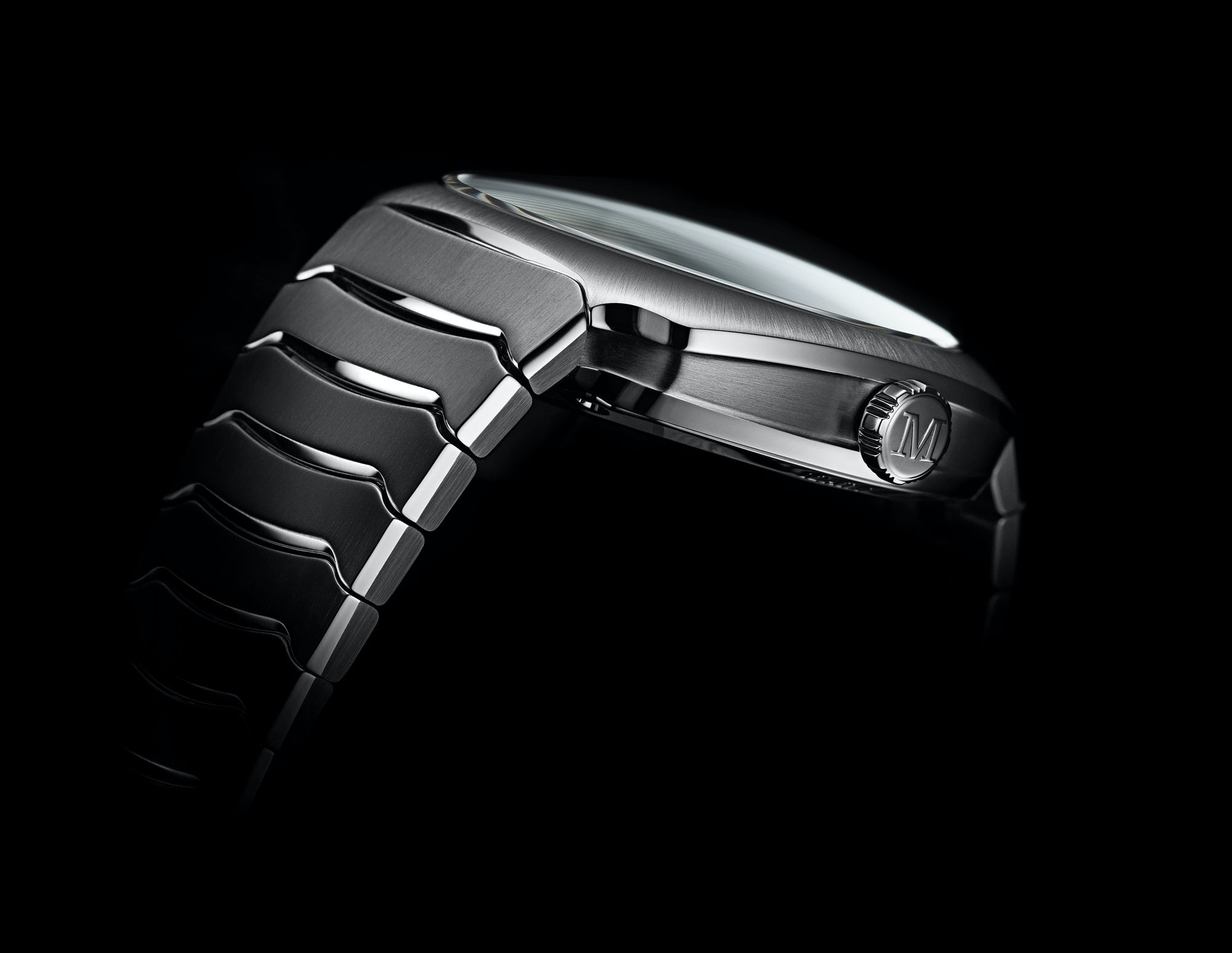 ミドルケース部分は窪み、側面にはサテン仕上げ、ケース表面にはブラシ仕上げとポリッシュ仕上げが交互に施され、一体化されたSSブレスレットは複雑な構造をもつが手首のラインに沿う滑らかなラインを備えている。また、全てのリンクは可動するように連結。縦方向のブラシ仕上げにポリッシュ仕上げの表面を組み合わせた穏やかな波の形を描く。