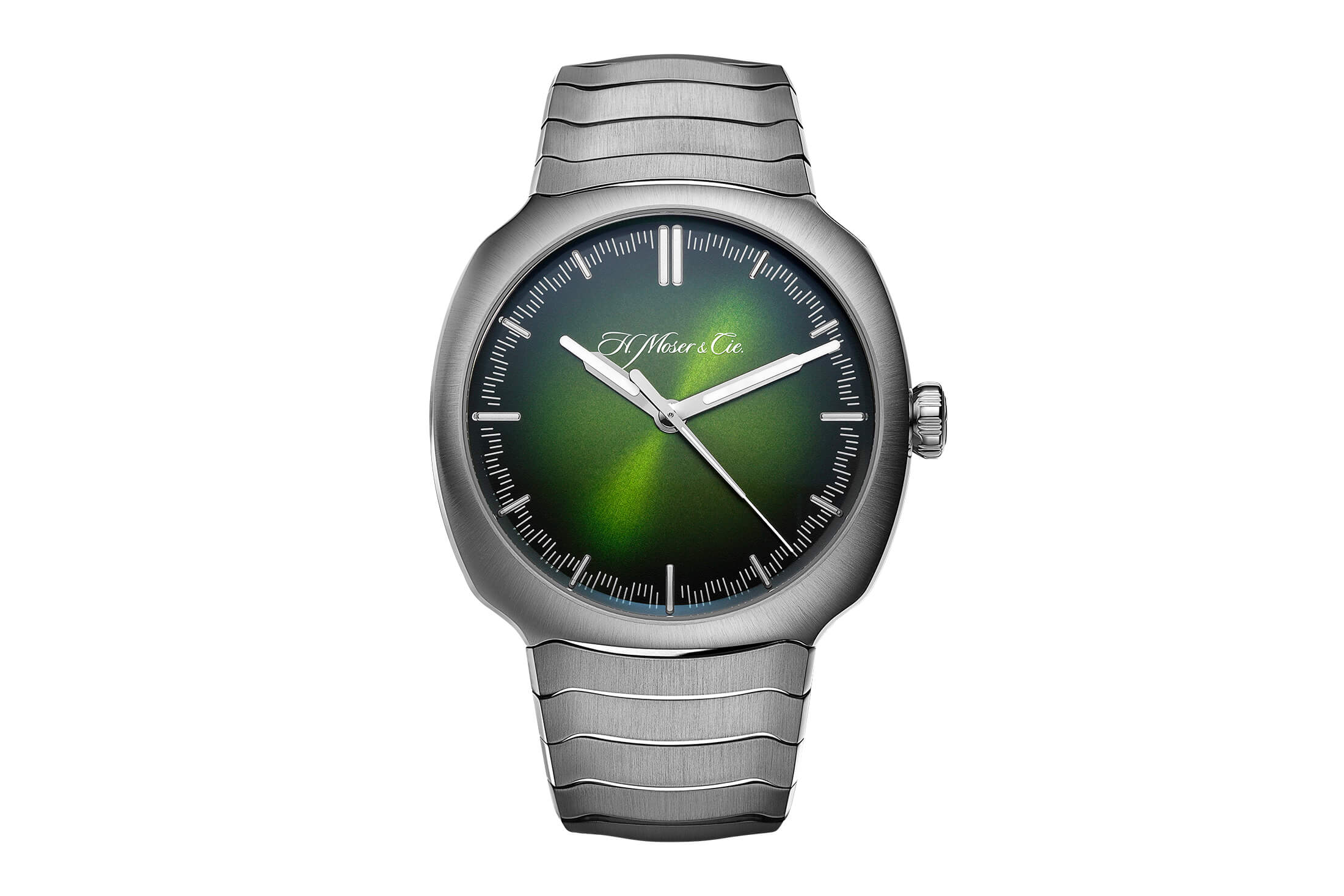 一体化されたSSケースとブレスレット、そしてグリーンの文字盤。ストリームライナー・センターセコンドは今、時計市場を賑わせている2つの潮流を見事に取り入れたモデルとなっている。