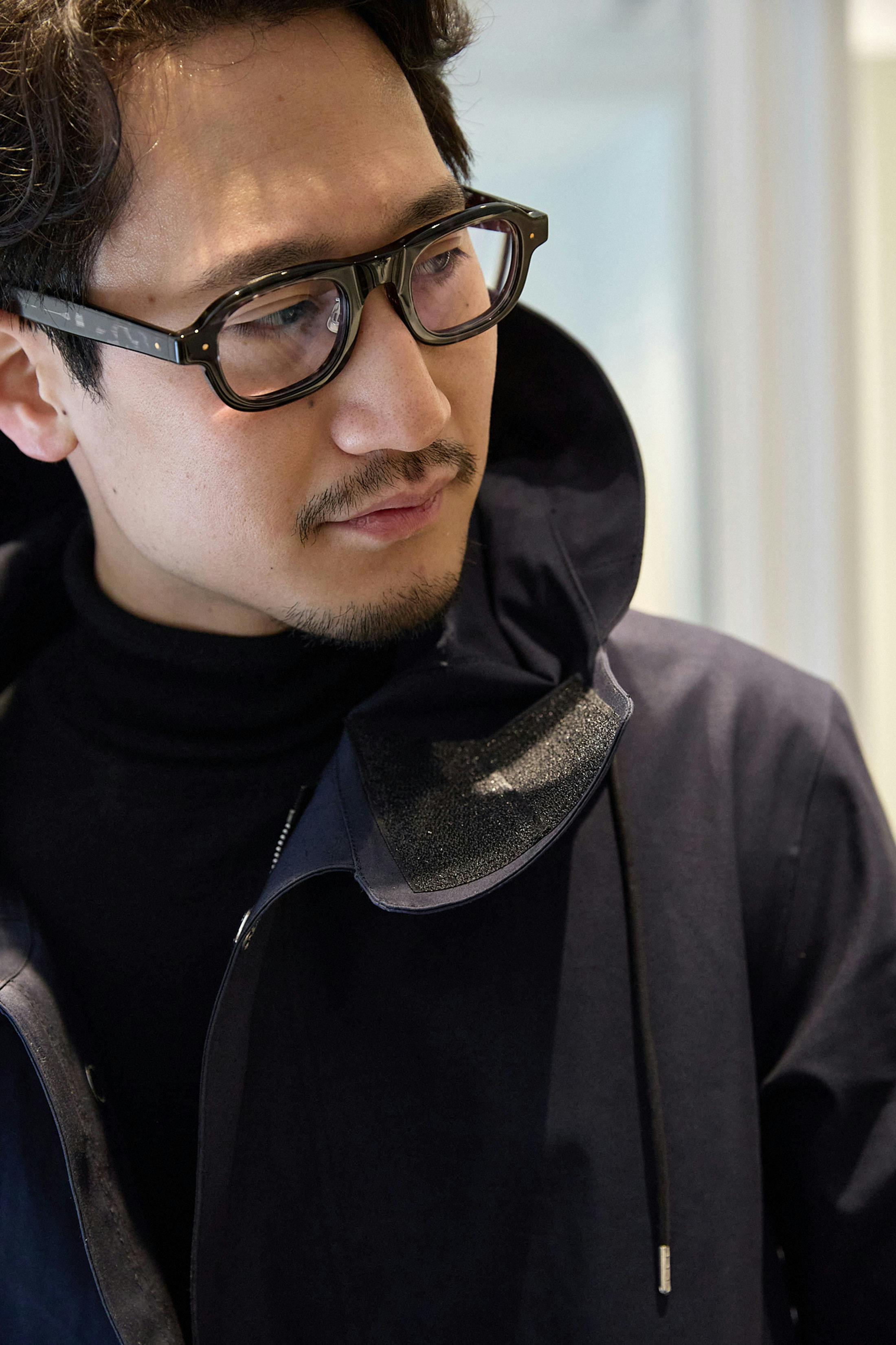 全体として意識したのは、カジュアルに寄せすぎないこと。コート自体にしっかり存在感があるので、時計まで強いものを合わせるより、少し静かなものを選んだほうがまとまりやすい。とはいえ、きれいに整えすぎるとこのコートのよさも薄れてしまう。白や黒をベースにした服に、少し尖った要素を入れるのは普段から意識していることで、今回でいえばそれがフィールドパーカーに合わせたプリマルナだった。今回の組み合わせには、自身の思想がそのまま表れていると思う。