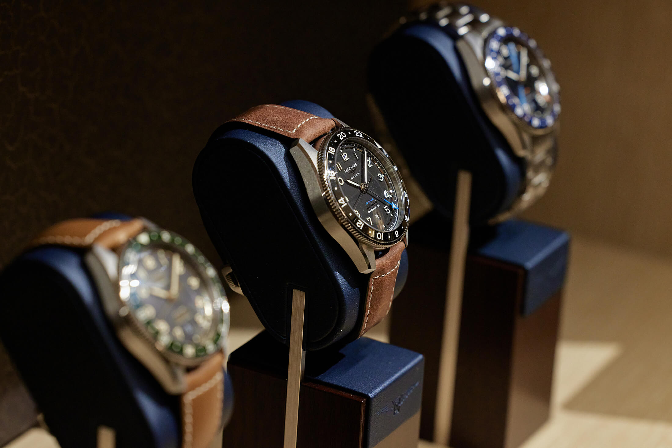 写真右は今春に登場したロンジン スピリット フライバック。エクスクルーシブキャリバーであるL791.4を搭載し、コレクション初のシースルーバックを採用。左は昨年発売されたGMT機能を搭載したロンジン スピリット Zulu Timeだ。