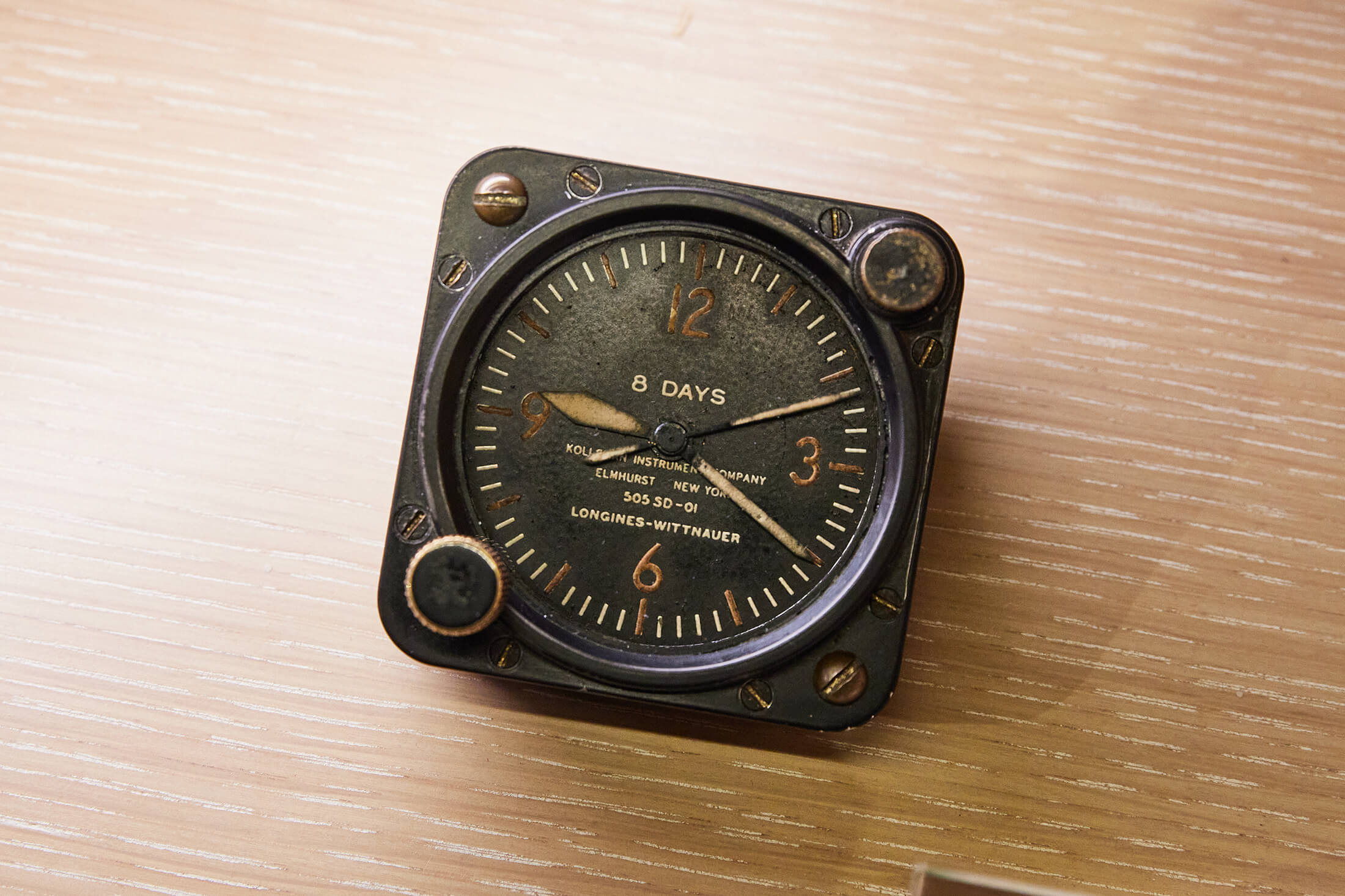 1931年に、初となる日本・アメリカ間の太平洋無着陸横断飛行を成功させたクライド・パングボーンとヒュー・ハーンドンに提供されたコックピットクロック。パイロットが使用することを想定した24時間ダイヤルと分針・時針のダブルセットで、第2時間帯を表示するタイムピース。