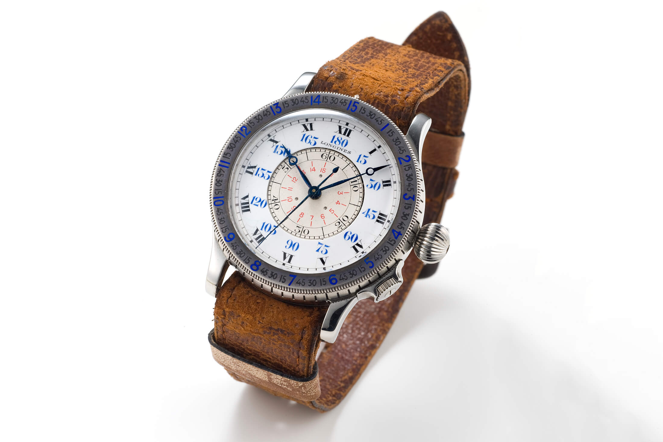 現在ロンジン リンドバーグ アワーアングルウォッチの名で知られる1931年に発されたアイコニックピース。飛行家チャールズ・A・リンドバーグのアイデアが、ロンジンの優れた技術力で具現化した。