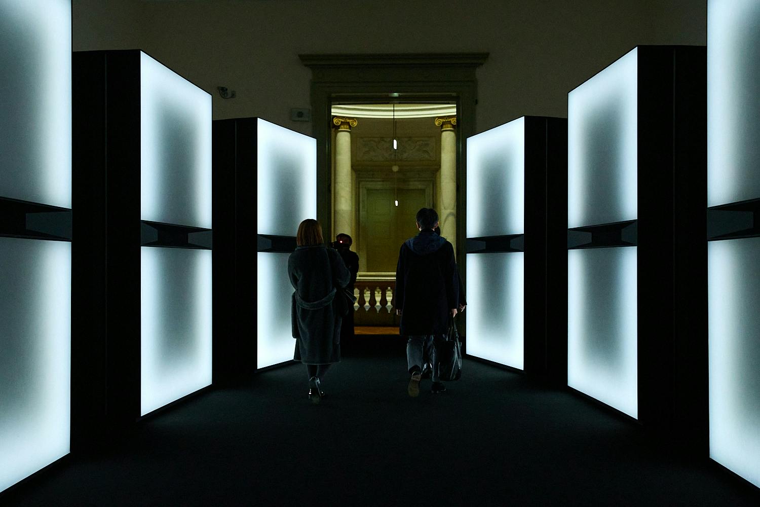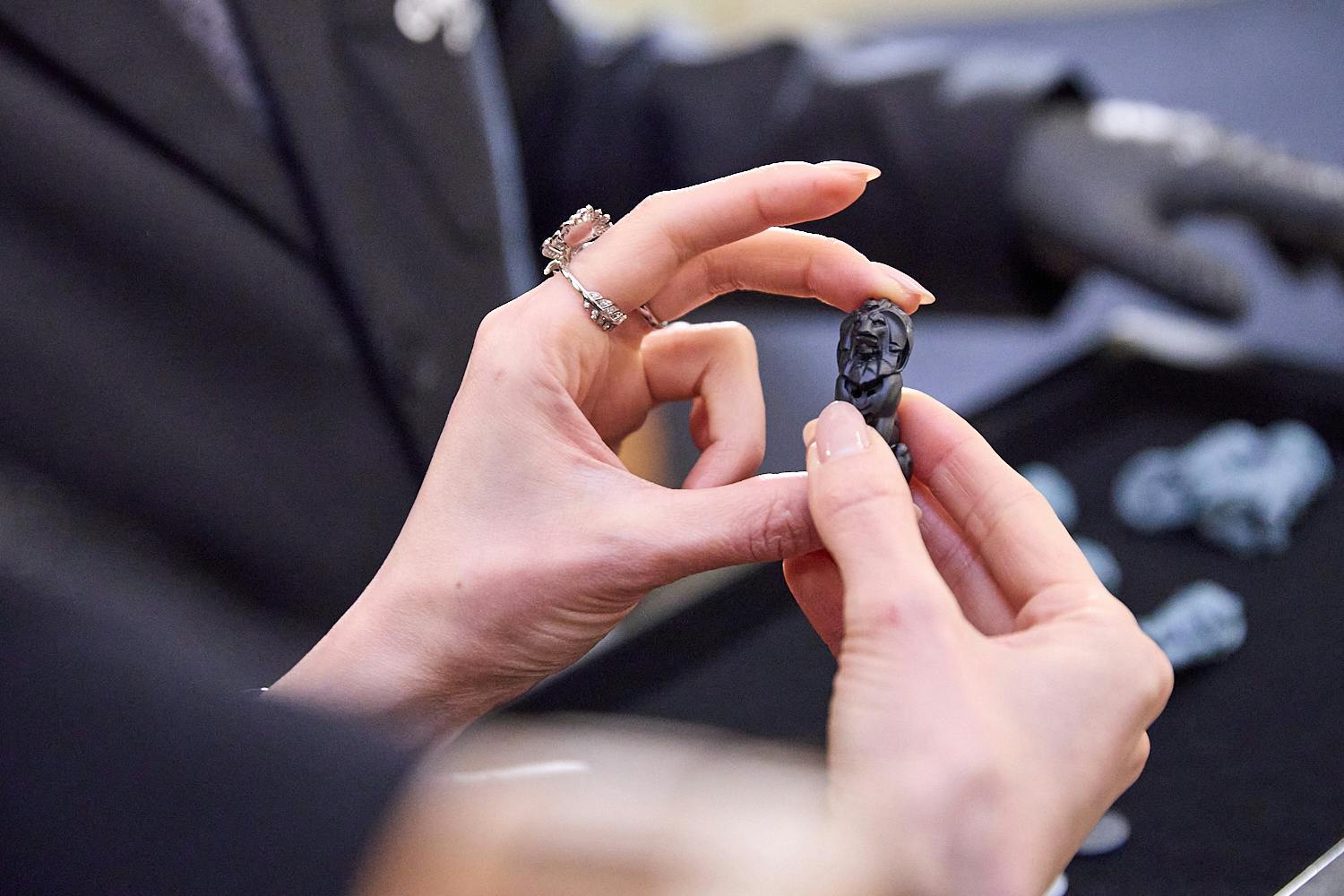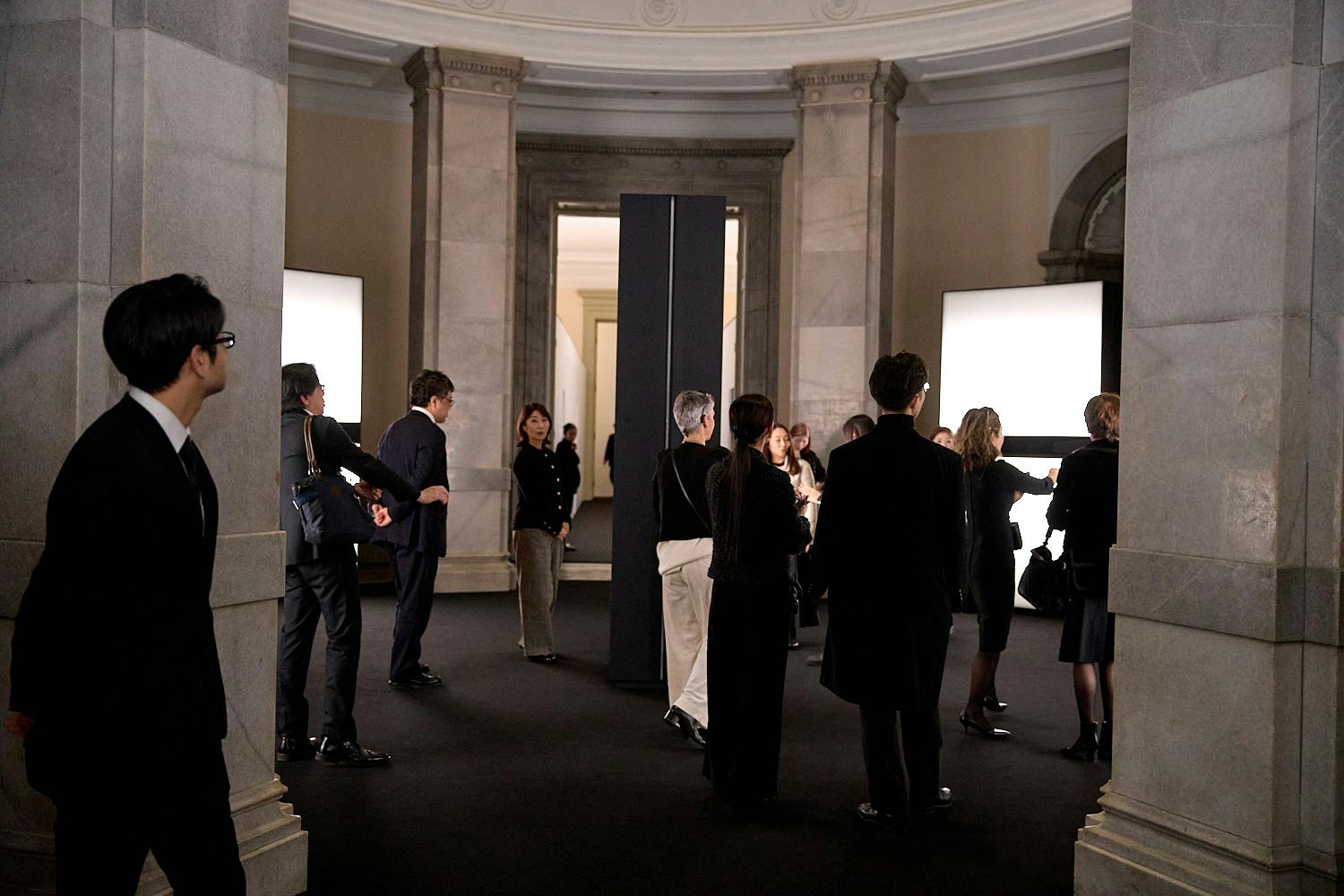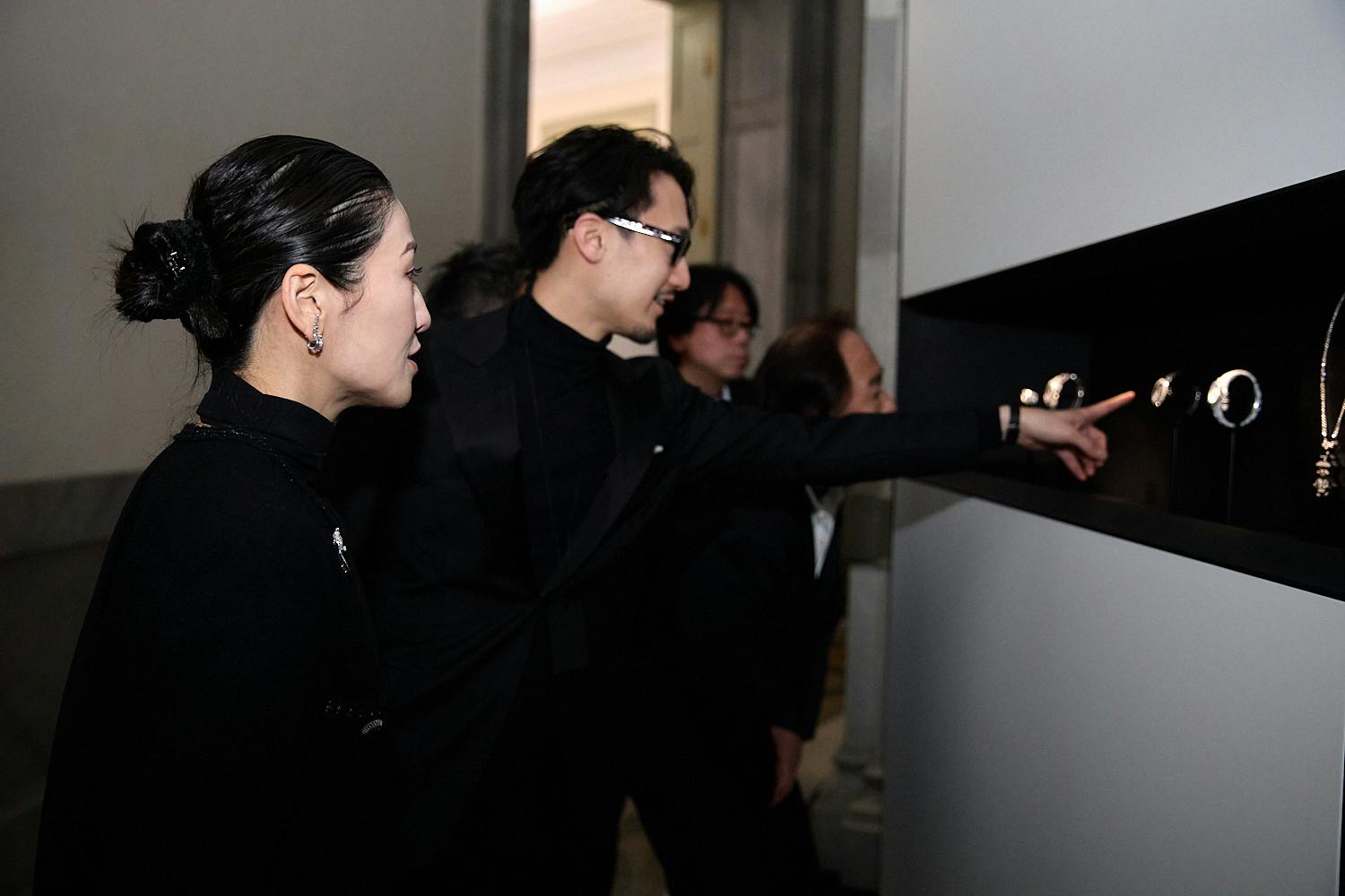 会場となった表慶館は、1909年に開館した日本初の本格的な美術館であり、現在は重要文化財に指定されている。当日ゲストは1階アトリウムのモノリス、螺旋階段のフォトコール、2階展示を順に巡りながらメイン会場へと向かった。今年のハイエンドウォッチコレクションのテーマのひとつに“ゲーム”を掲げており、会場演出もそれに合わせて構成。黒と白を基調とした空間には、ドミノに見立てた大きなモノリスやチェスボードケースが設けられ、そのなかに時計やジュエリーウォッチが収められる。音と光を組み合わせた演出も加わり、コレクションの世界観を空間全体で表現していた。