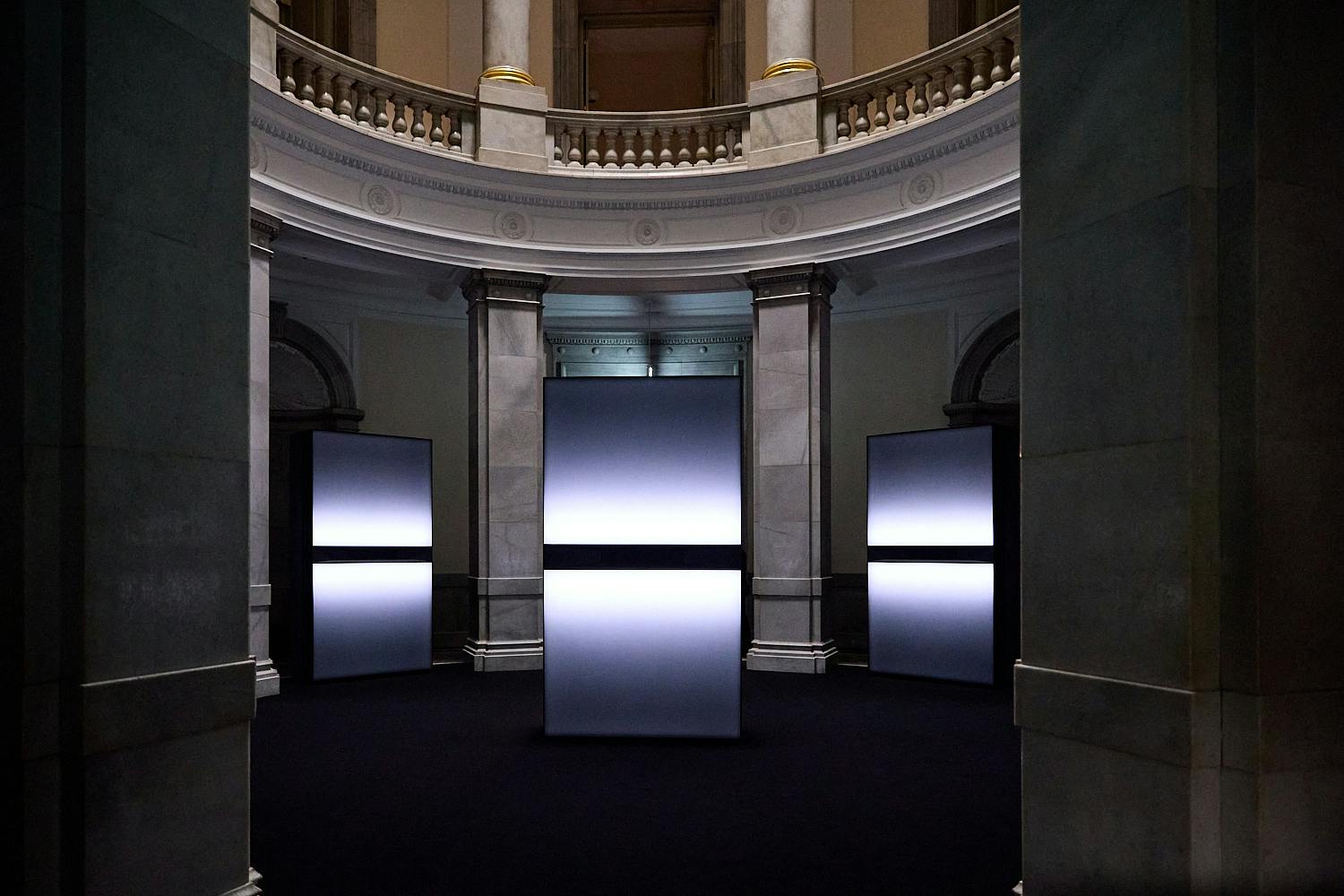 2階にはドミノに見立てたモノリスが。