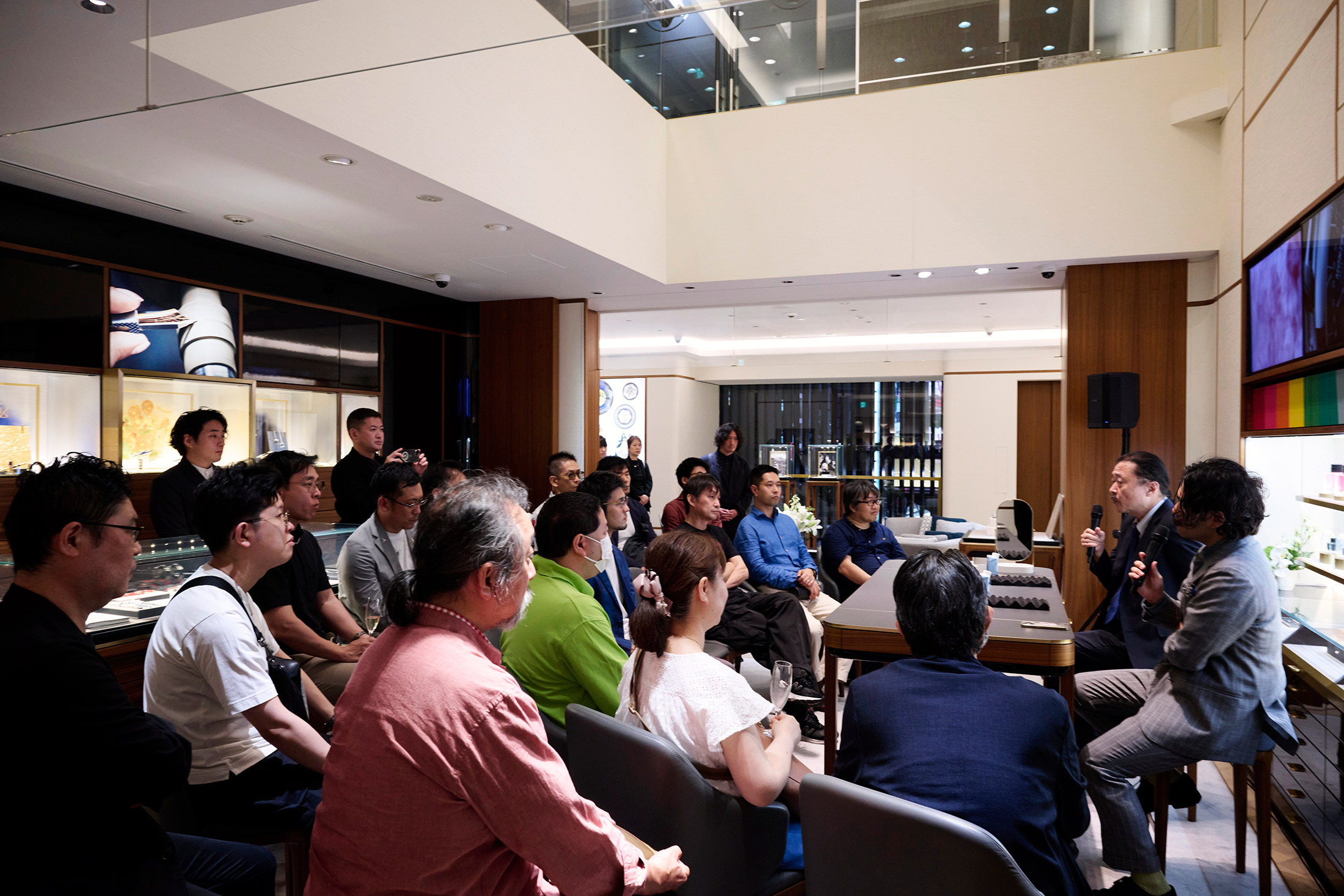 時計評論家である並木浩一氏(左)の話す内容に、参加者たちは深くうなずきながら耳を傾けていた。