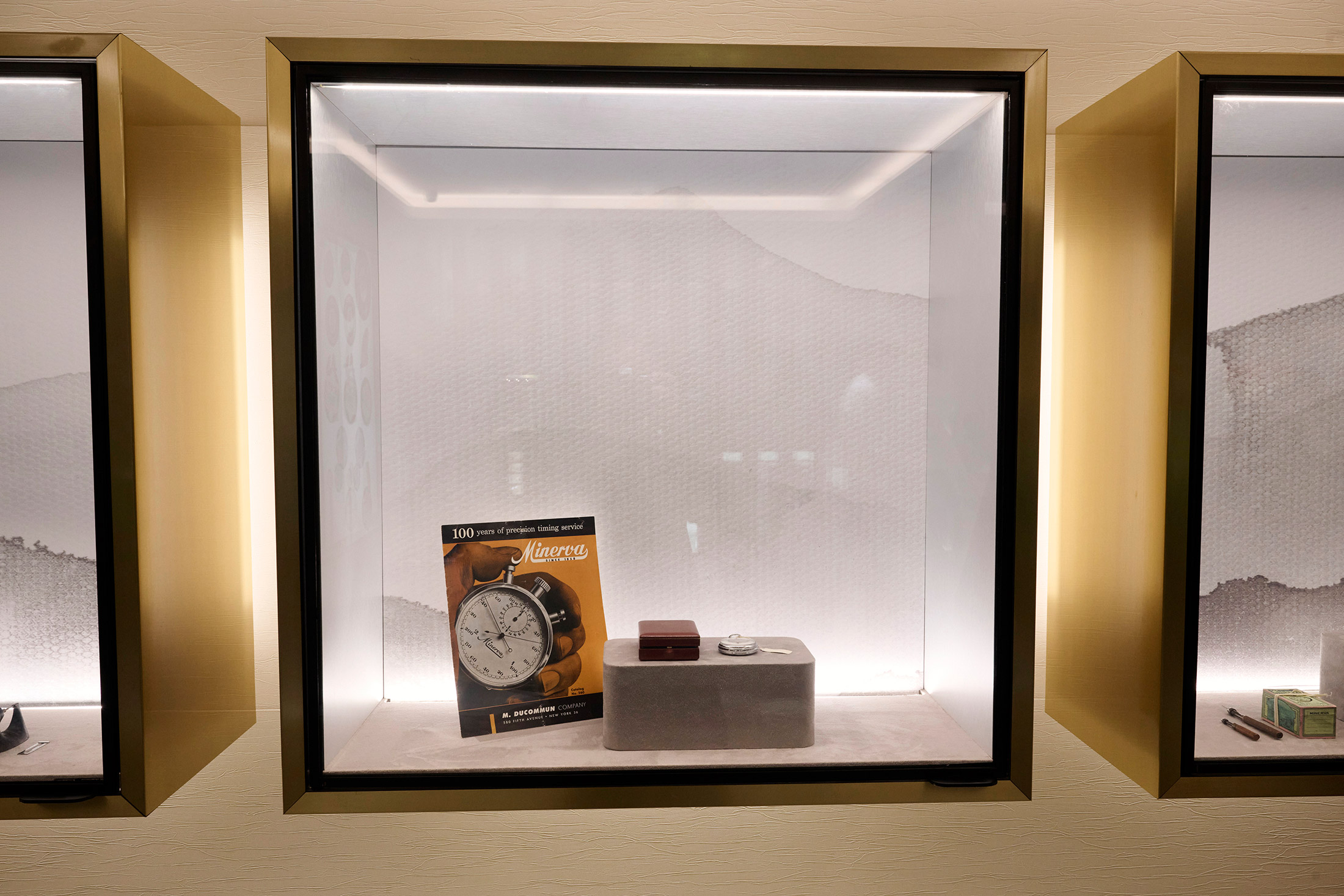 実は、ミネルバの技術はストップウォッチ分野においても広く評価されてきた。1936年のガルミッシュ・パルテンキルヒェン冬季五輪ではスキー競技の公式計時を担当。またアメリカ三大ネットワーク(ABC、NBC、CBS)においても、番組制作のタイムキーパー用にミネルバのストップウォッチが採用された実績がある。そのラインナップは最大で50種類以上のバリエーションが存在し、水泳、ラリー競技、馬術、ヨット、科学研究など、それぞれの用途に応じて設計が最適化されていた。なかでも、100分の1秒を計測できる手巻きモデルはギネス世界記録にも登録されている。会場には並木氏の私蔵品から複数のストップウォッチが展示され、来場者が実機を間近に確認する機会が設けられた。