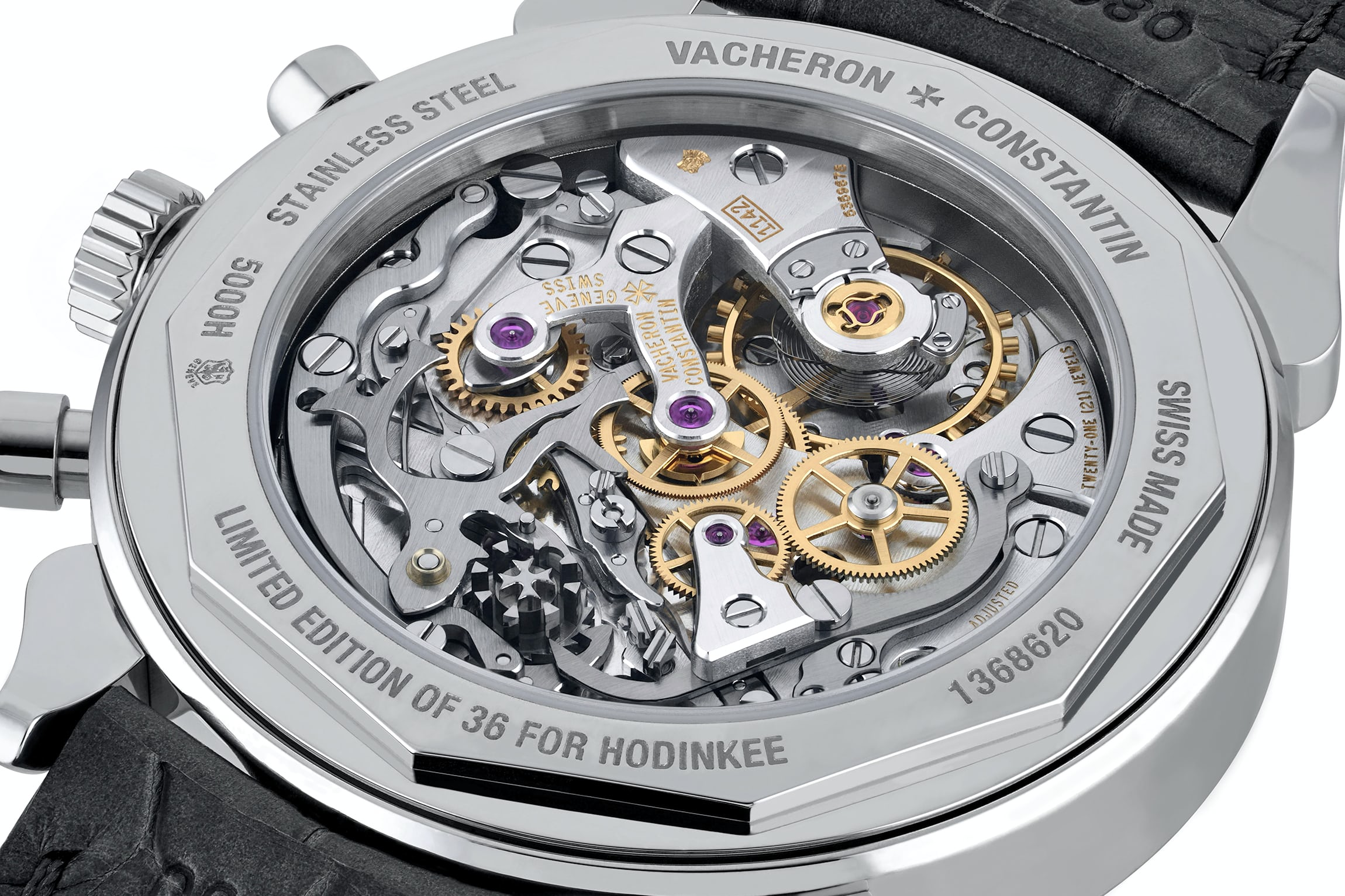 本モデルには、ヴァシュロンのマットグレーのアリゲーター・ストラップの他に、天然のバレニアレザーとライトグレーのカーフスキンが付属します。1950年代に生産されたオリジナルのコルヌ・ドゥ・ヴァッシュの本数に敬意を表して同じく36本が限定本数として選ばれました。