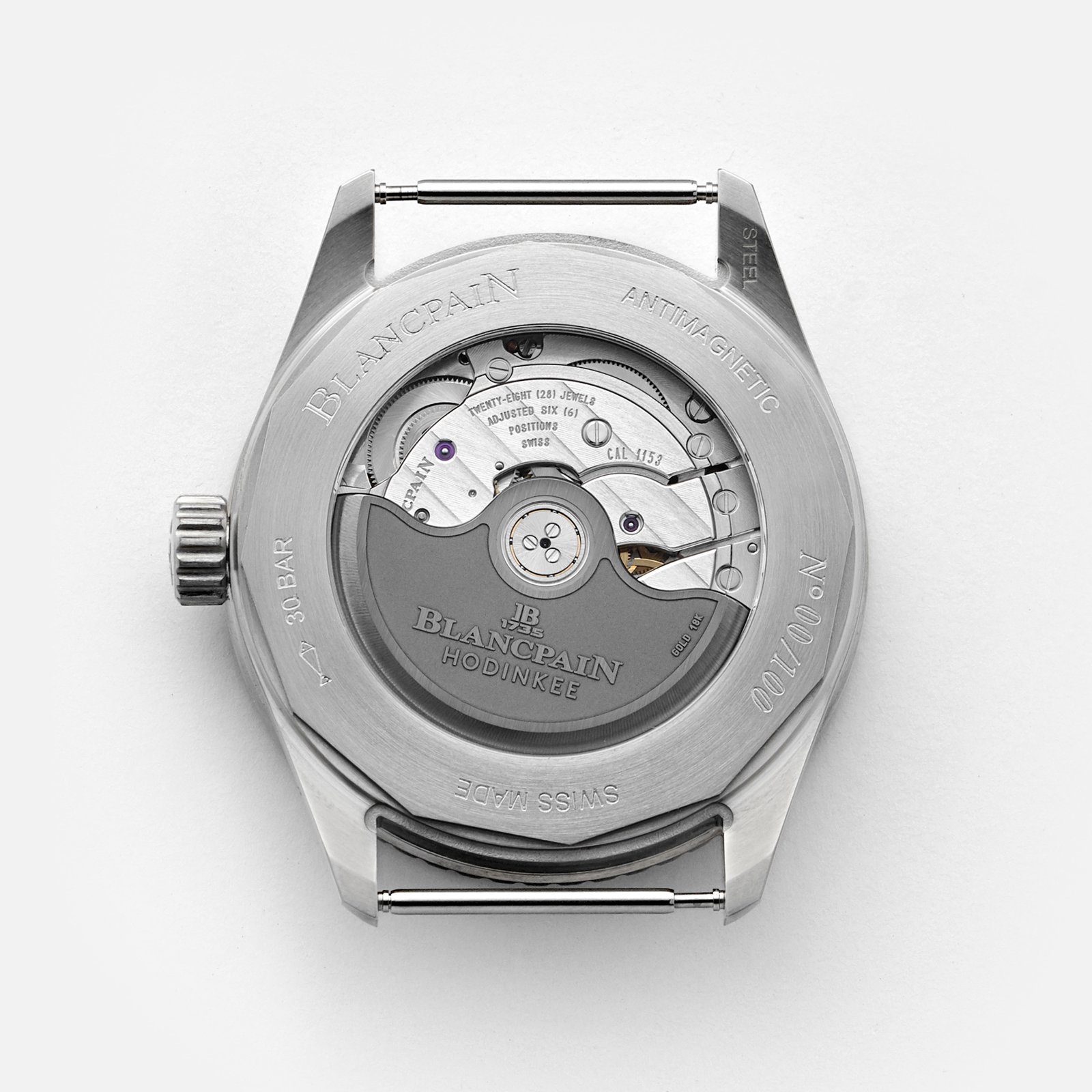 ブランパンとのコラボレーションは、同社のクラシックなデザインの核でありDNAでもある、すっきりとした視認性の高いマーカーと12時、3時6時、9時にアラビア数字を採用。さらに38mmと小ぶりのサテン仕上げが施されたスティールケースを備えて登場しました。内部には、100時間のパワーリザーブと、この価格帯の時計では一般的に見られないレベルの仕上げを誇る完全自社製ムーブメント、Cal.1153が搭載されています。