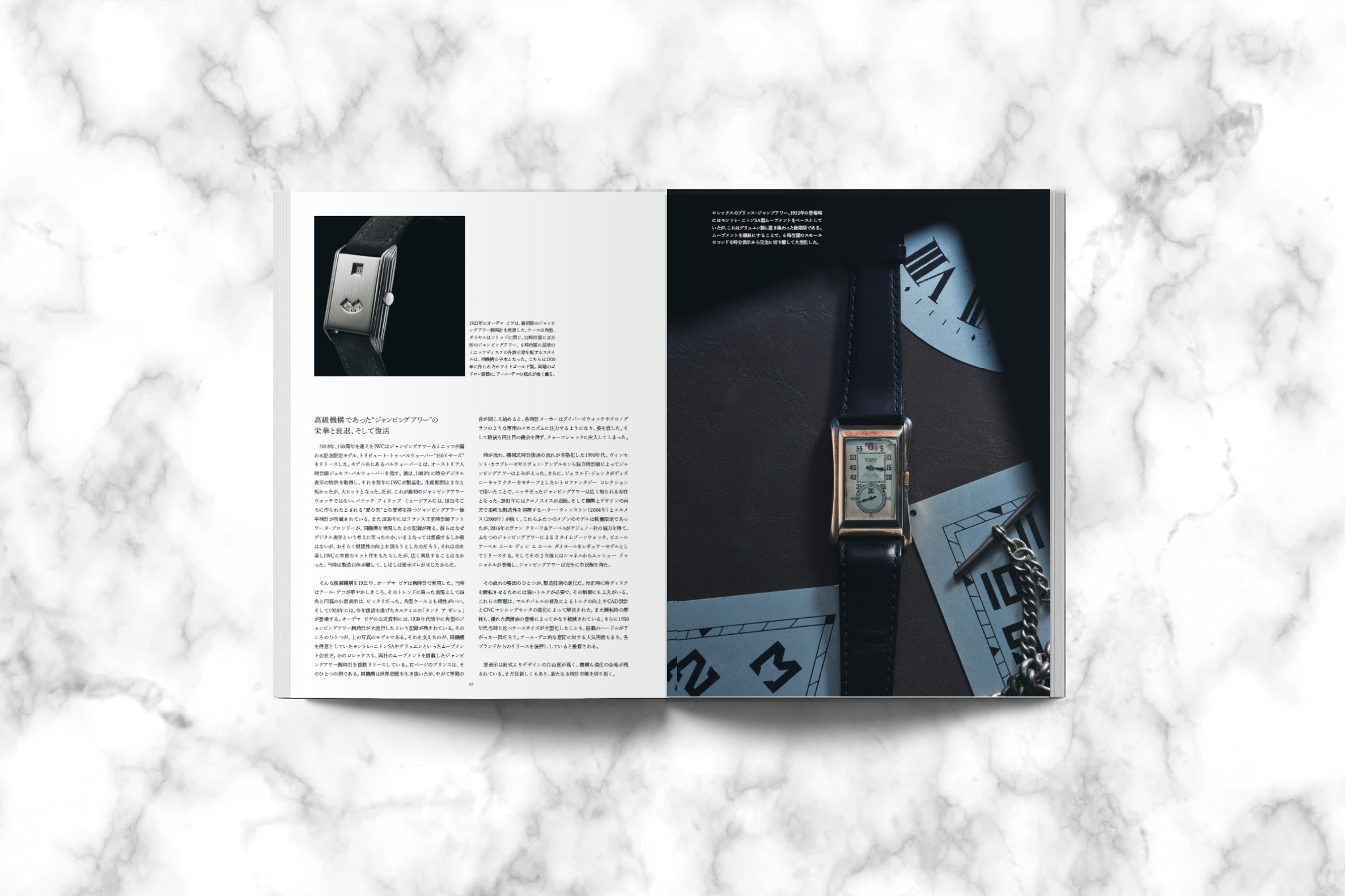 さらに今号では、ジャンピングアワー機構についても掘り下げています。20世紀初頭に腕時計に搭載され、栄華を極めたジャンピングアワー機構。近年では同機構を搭載したモデルがかつてないほど登場しています。特に今年のWatches & Wondersで披露されたカルティエのタンク ア ギシェの復刻は、大きな話題を呼びました。本誌では1920〜30年代のジャンピングアワーの黄金期を振り返りながら、カルティエやA.ランゲ&ゾーネ、シャネルなど大手メゾンから登場した同機構搭載モデルを精査し、現代における同機構の立ち位置を明らかにしていきます。