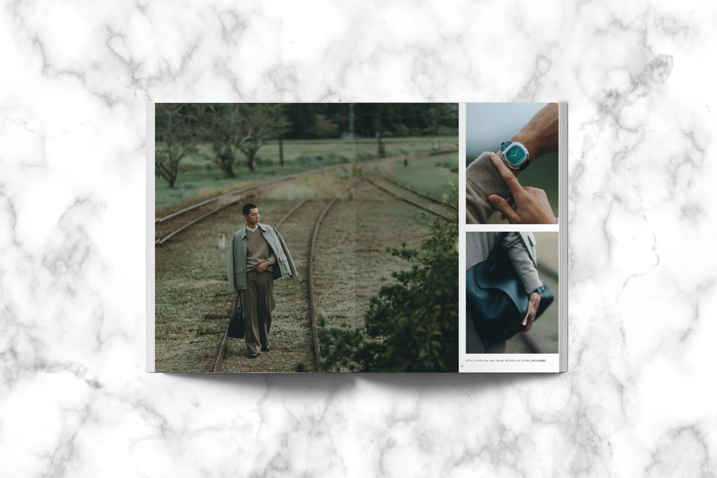 このほかにも、コートとバッグをテーマにしたァッションストーリーも掲載。それだけを頼りに、ひとりあてもない旅に出る男性の姿を描きます。