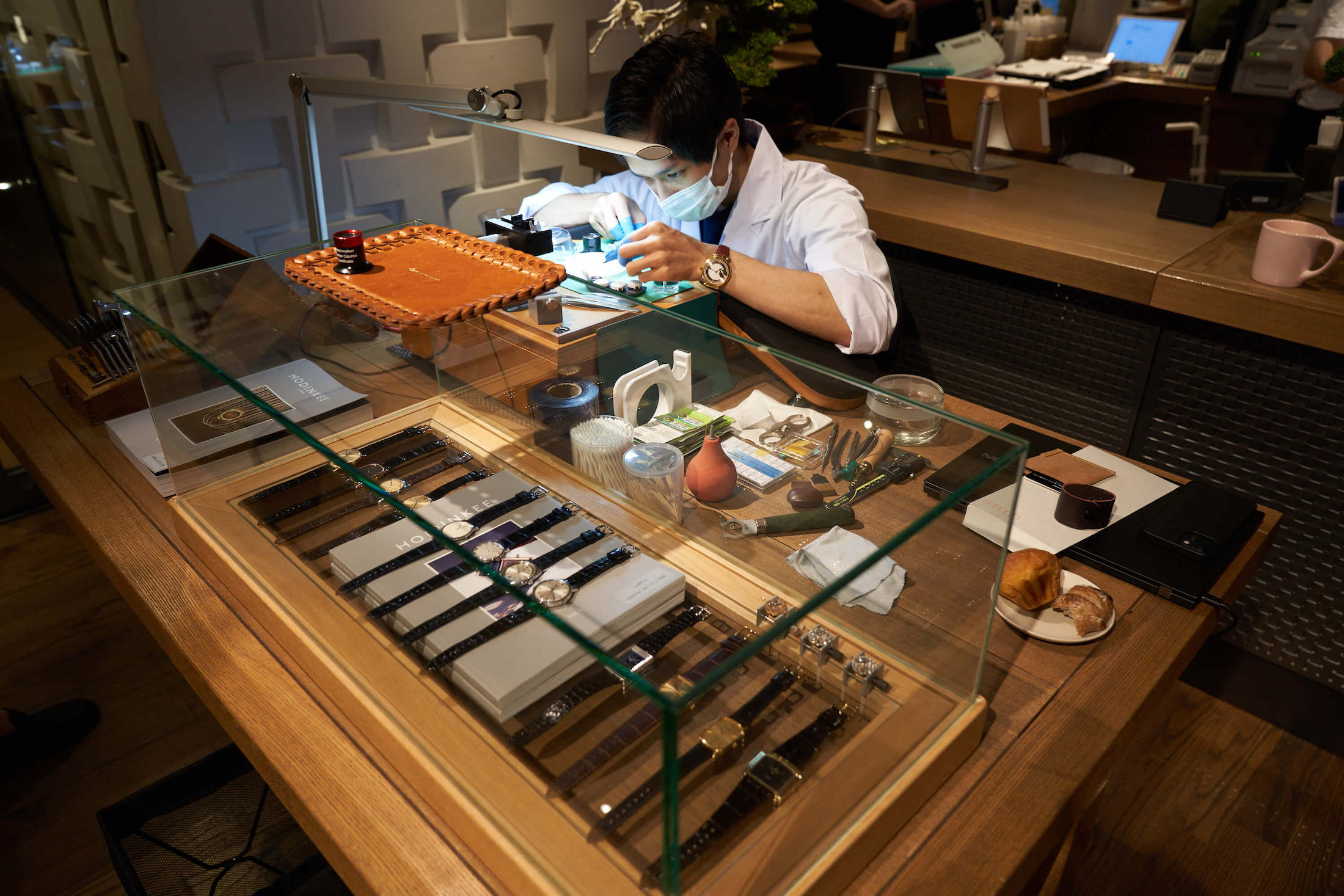 江口時計店の出店ブース。実演を披露する時計師はそう、あの関 法史氏。