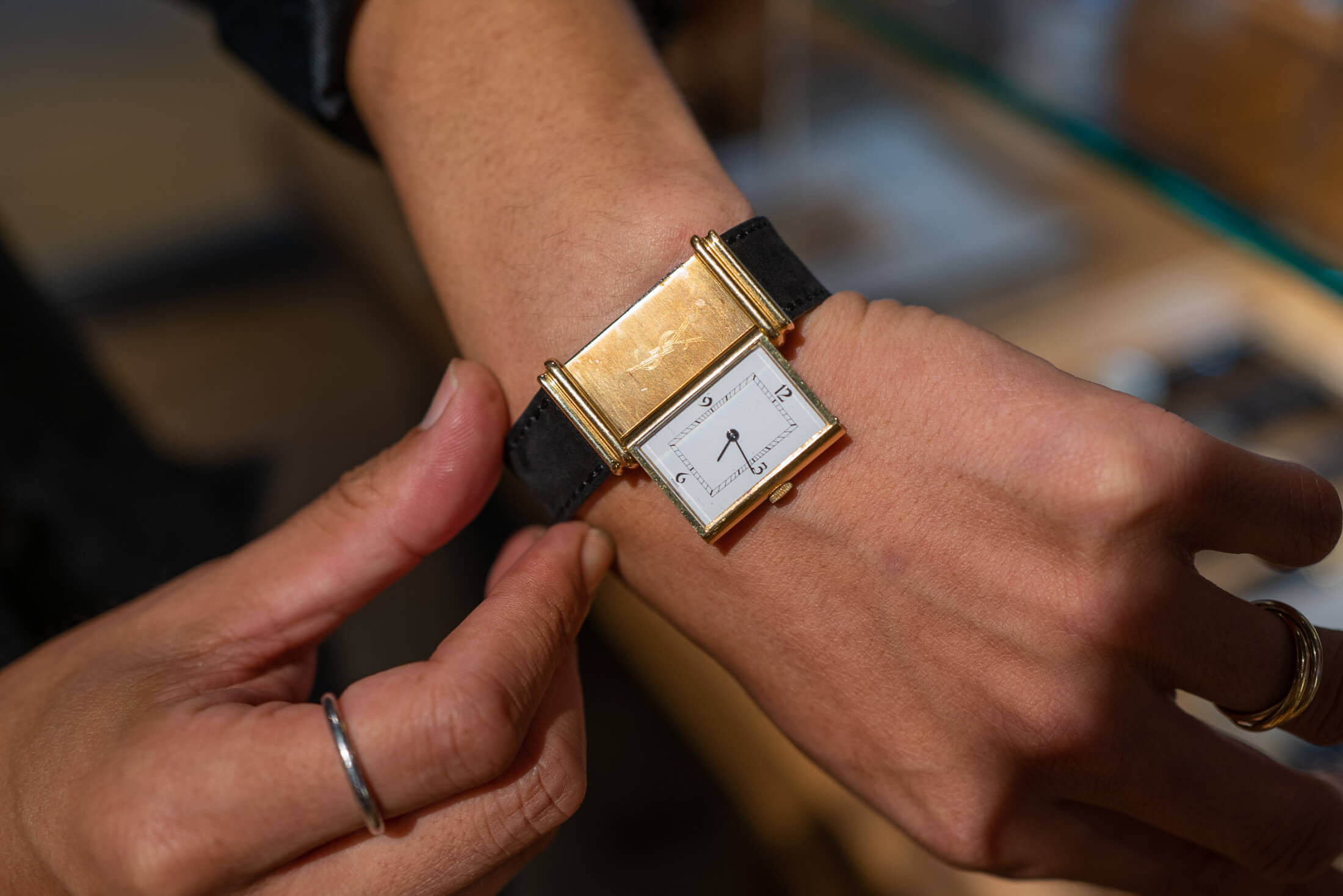 江口時計店の店主、江口大介氏が所有するイヴ・サンローランのレベルソ。