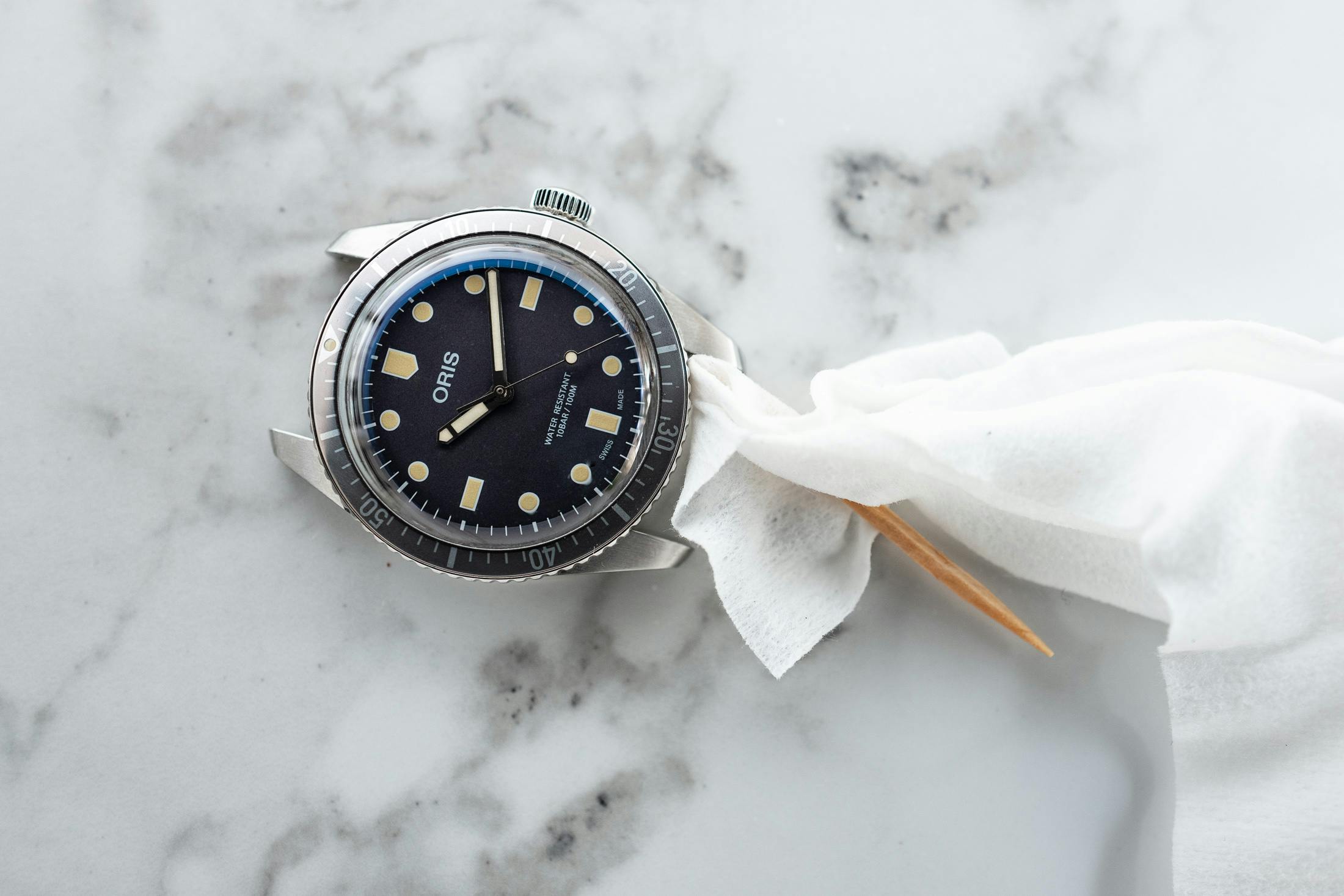 これでようやく完了だ。 - 油膜の一切ない、真新しくクリーンな時計が、あなたの手首の上にあるはずだ。入念なクリーニングが完了した後は、数日ごとにウェットティッシュで簡単に拭いて時計を清潔に保つことをジェイソンは薦めている。最近では手洗いが積極的に推奨されていることもあって、これは特に重要なことだ。水や石鹸が時計内に溜まると、時間の経過とともに汚れの蓄積となっていくことが広く知られている。可能な限り、手を洗うときは時計を外し、清潔な(そして乾いた)手首の上に戻すのがベストだ。