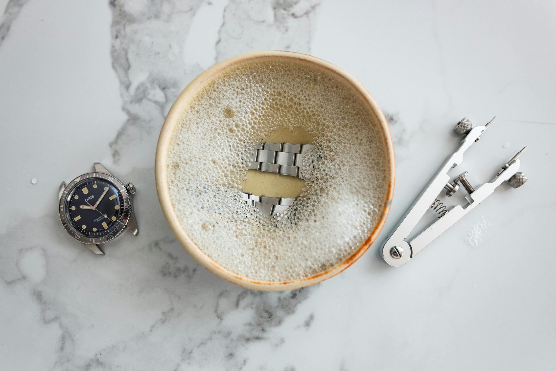 これらを念頭に置けば、濡れた雑巾や水に浸すことはできないし、水道の蛇口で時計を洗い流すようなことは避けられる。いくつかの時計は、確かにこの方法で対処できるが、僕たちはより簡単なアプローチを取っていく。必要なものを見てみよう。