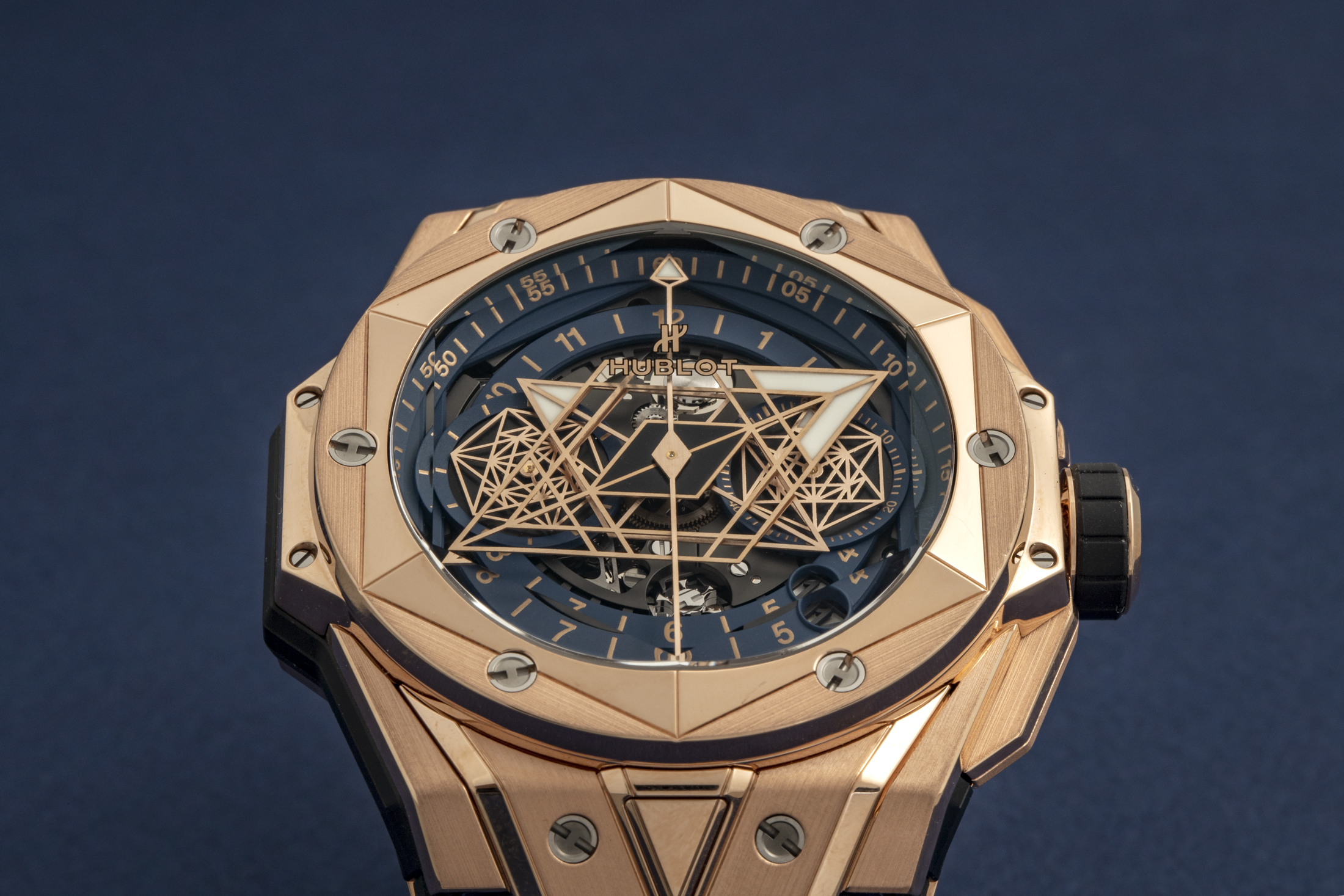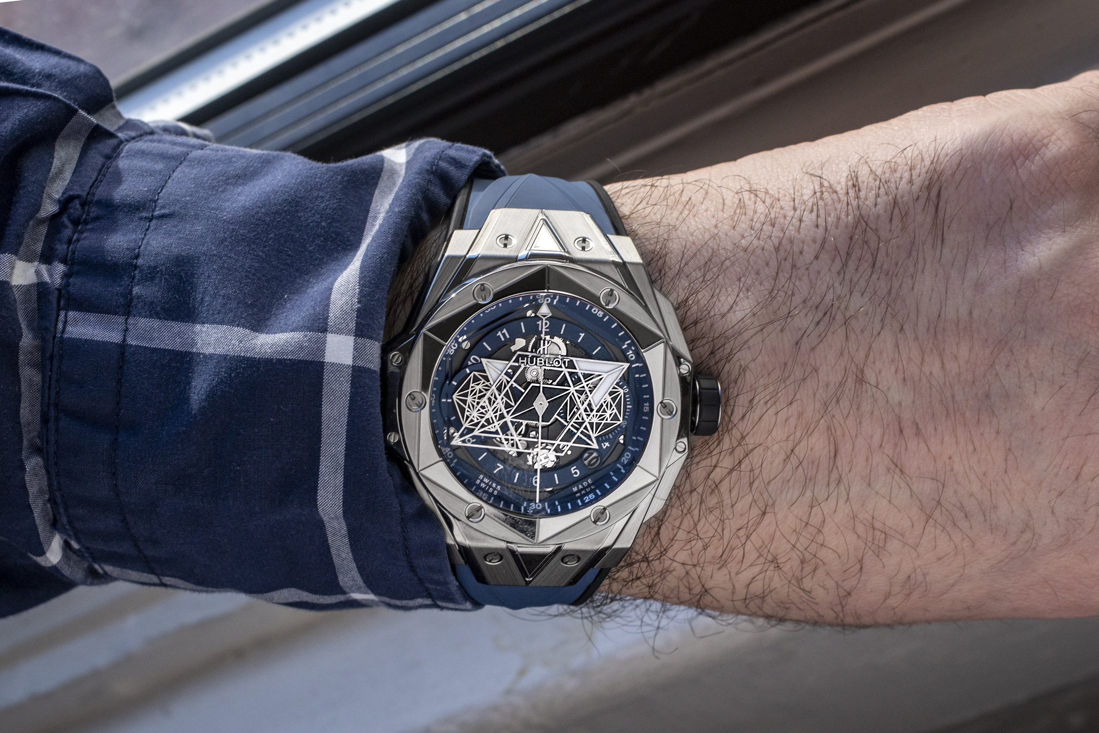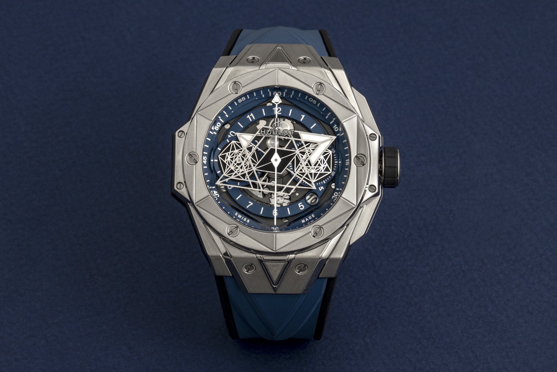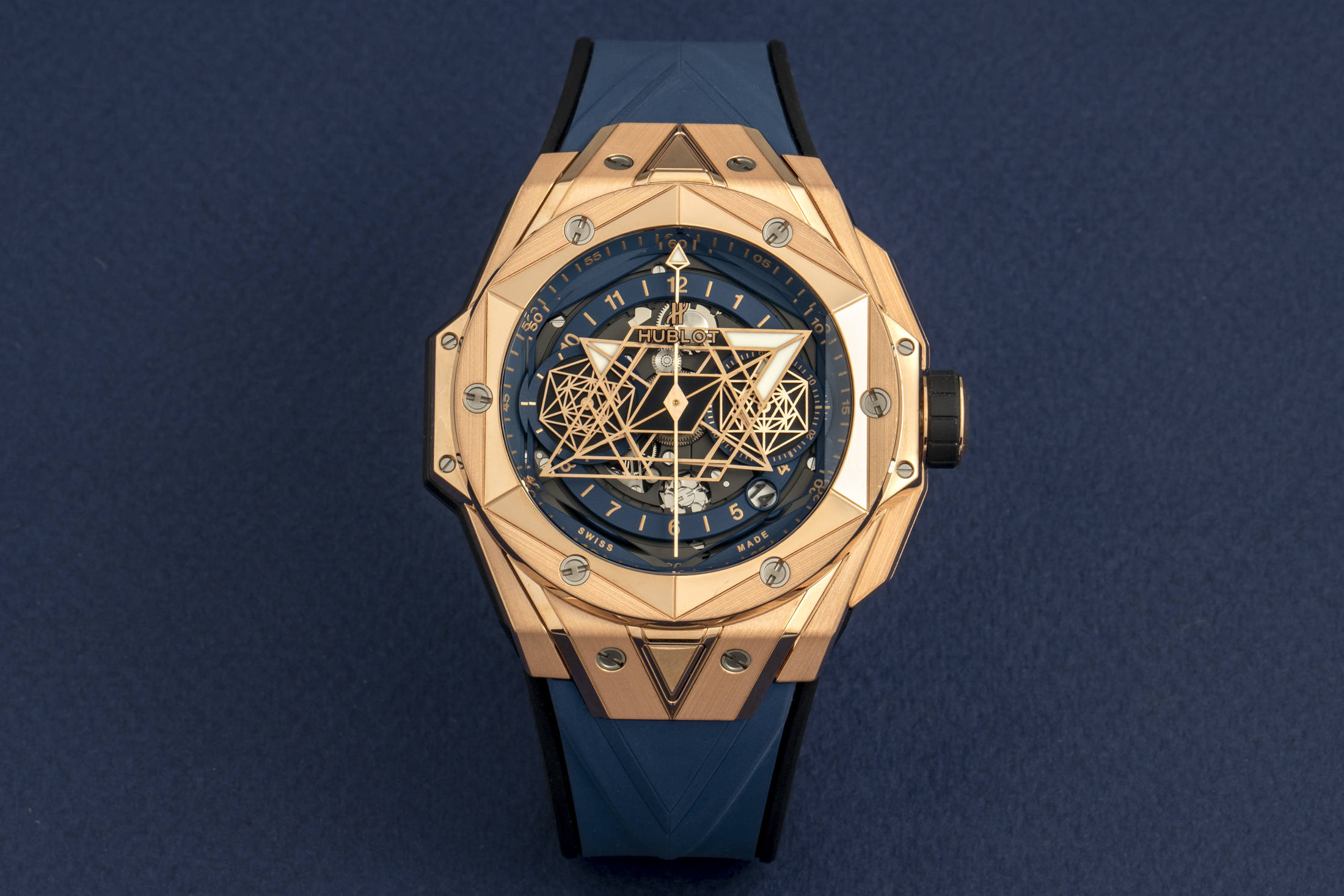 ウブロというブランドは、異なる素材やアイデアの融合を体現し、現在の製品ラインナップにはテーマ性の強いビジュアル・アイデンティティが見られ、多くのモデルでは、同じように顕著なデザインの特徴を表現している。そのウブロとサンブルーのコラボレーションは注目に値するのだ。