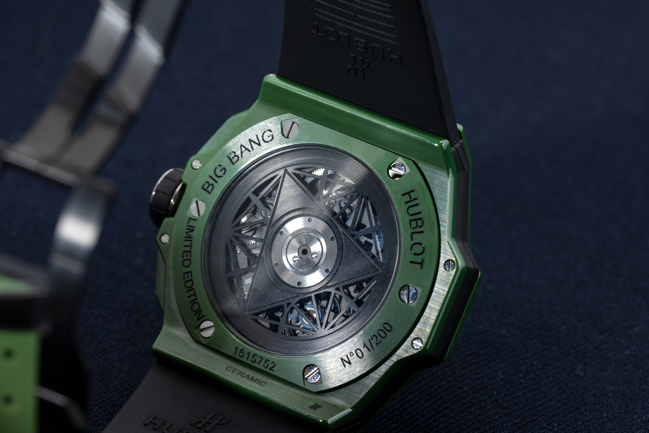 文字盤色: マットブラックのスケルトン(マジックゴールドとブラックマジック)、マットグリーン(グリーンセラミック)