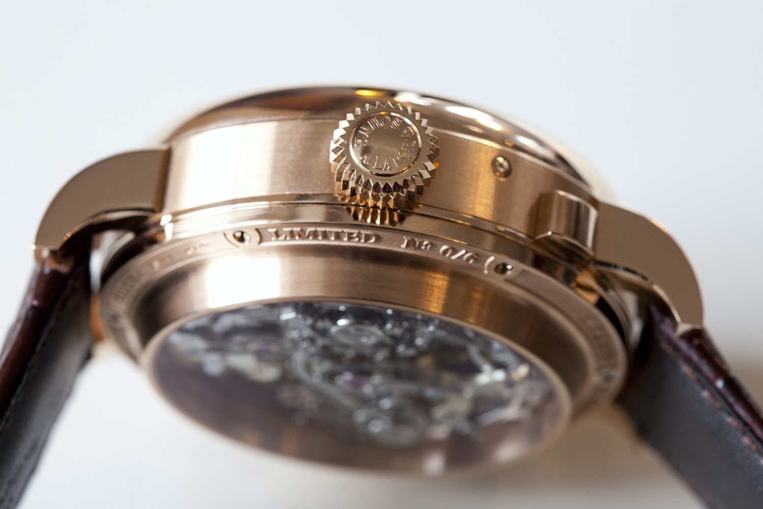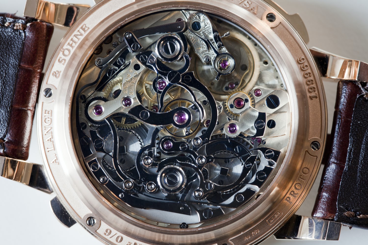 ほとんどの“コンセプトウォッチ”は、1~2本のロットで作られ、市販されることはありませんが、ランゲは本機で他のモデルとは違うことをすることにしました。マニュファクチュールが保有する2本のプロトタイプと、6つの番号が付けられたモデルが販売されます。このモデルは192万ユーロ(2013年12月当時で3億7000万円以上)という高額な価格で販売され、着用を想定できないサイズであることは留意すべき点ではありますが、本機の魅力は十分に伝わってくるでしょう。比較ポイントとしてはこの時計は、120万ドルでパテック フィリップによって提供された最も高価な時計、スカイムーン・トゥールビヨンの文字通り2倍の価格です。確かに、直径50mm、厚さ20mm以上のローズゴールドケース(ムーブメント自体は40mm)で、理論的には着用可能な時計だと思いますが、僕はそれよりもかなり小さいヴィンテージの卓上クロックを所有しています。繰り返しになりますが、それはこの時計にとっては全く問題にならないことです。全く次元の異なる時計なのです。