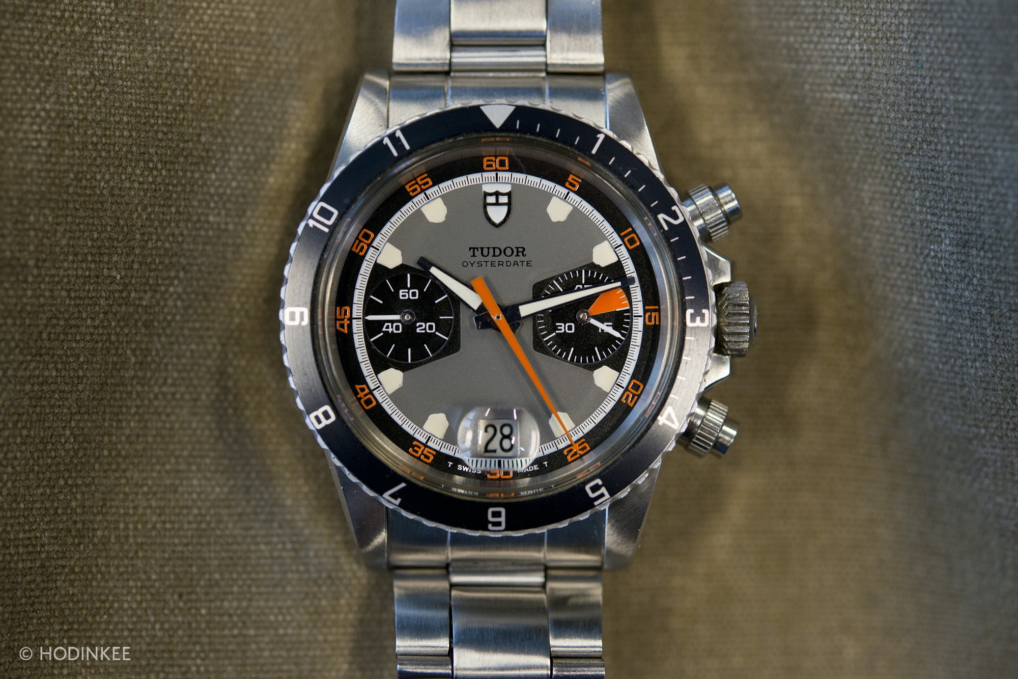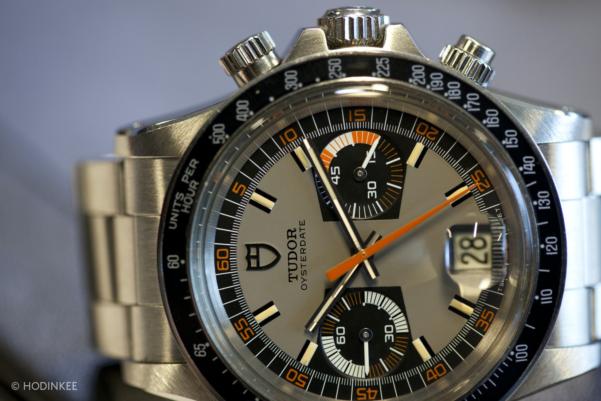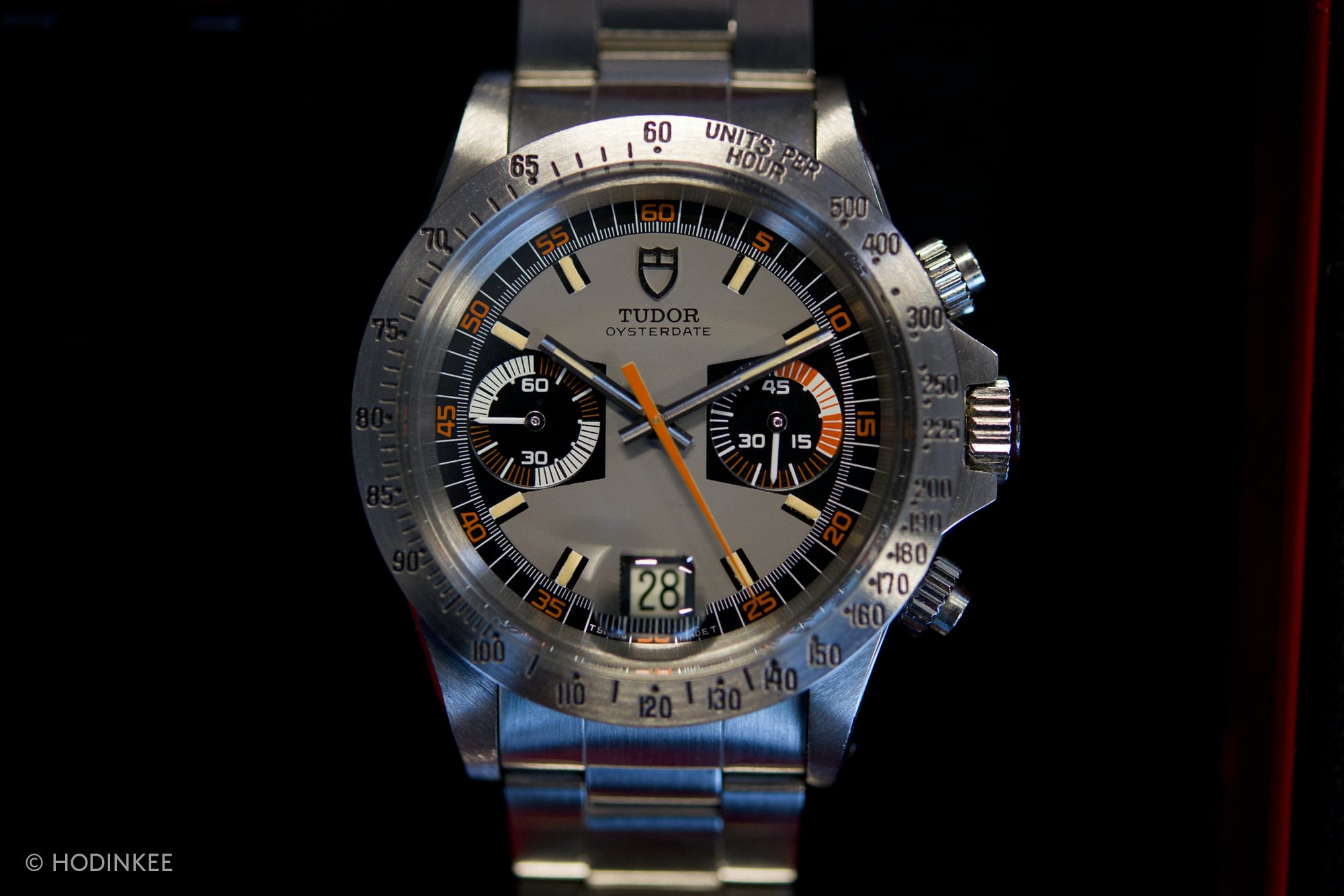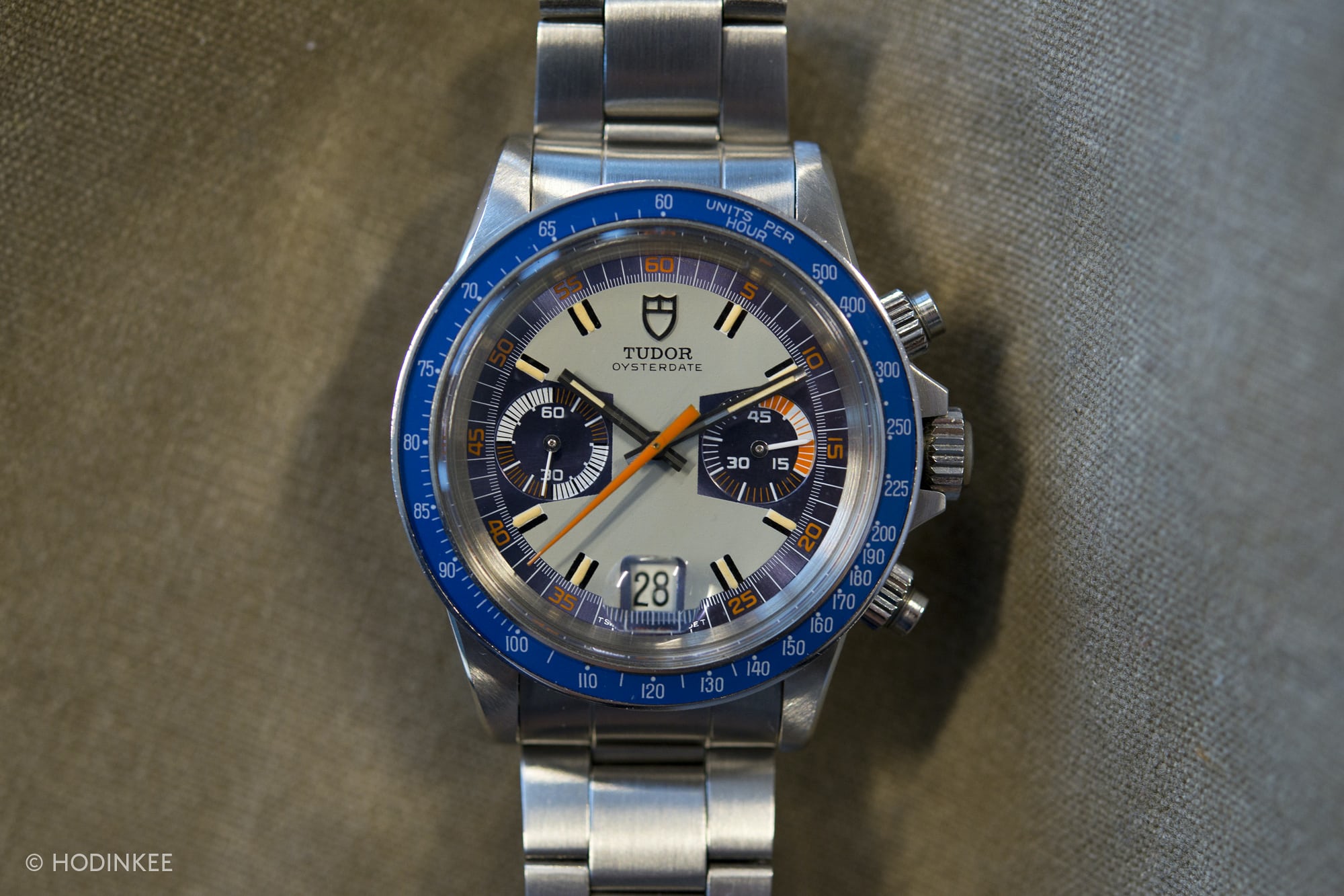 1970年、私たちはチューダー初のレーシングクロノグラフを目にすることになる。スティールベゼルのRef.7032とブラックタキメーターベゼルのRef.7031は、その後数十年の間に、ファンキーで色とりどりの時計を生み出した。