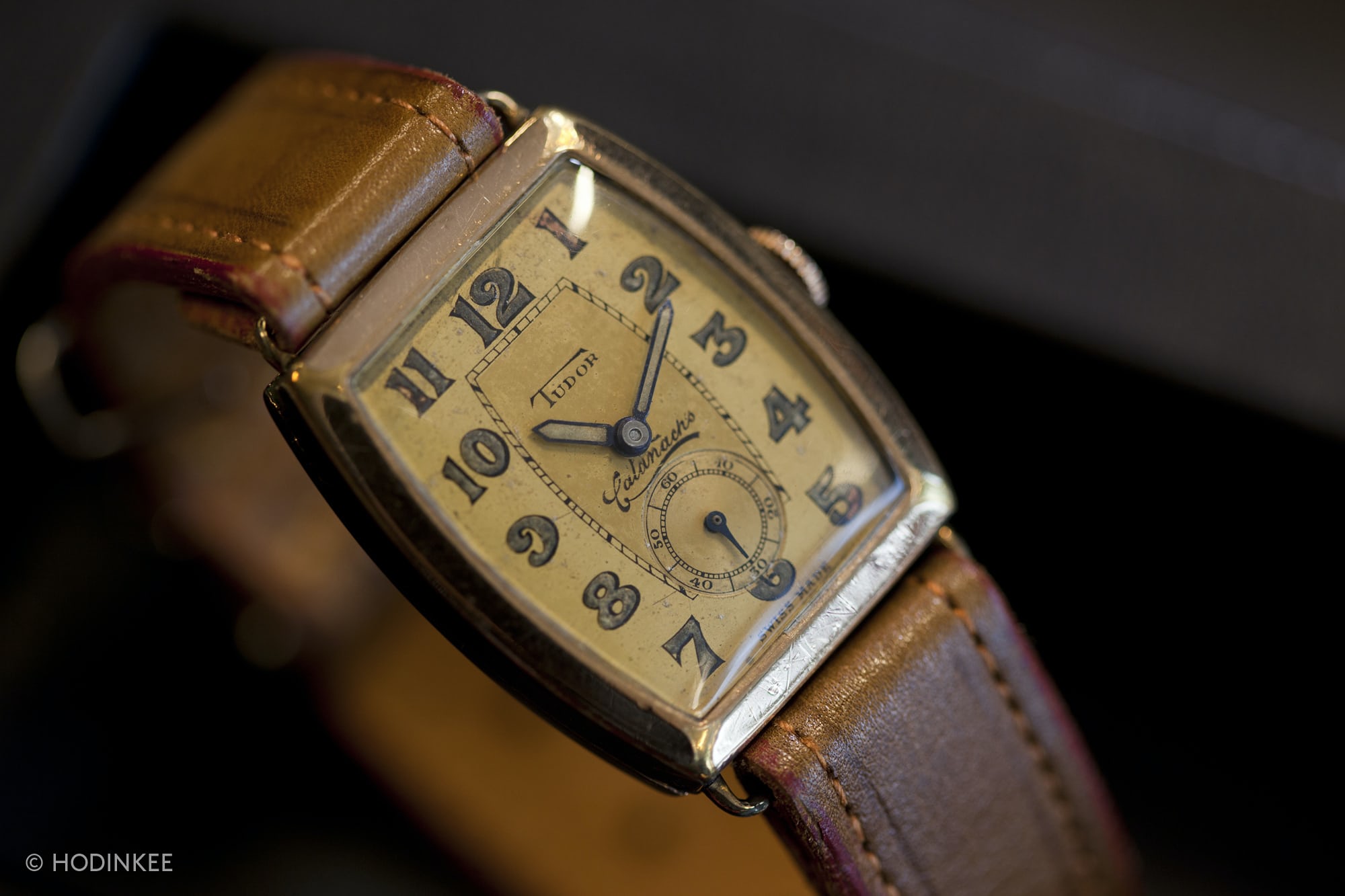 チューダーのブランド名は1926年にさかのぼるが、ハンス・ウィルスドルフが会社を登記した際、彼は時計会社ファミリーを構築することを望んでいた。ロレックス帝国の黎明期については、ロレックスの内部を詳しく紹介しているこちらの記事をお読みいただきたい。1930年代前半になると、ダイヤルに記されるブランド名は控えめになった。このトノー型ケースは、オーストラリアの代理店向けに製造されたものである。