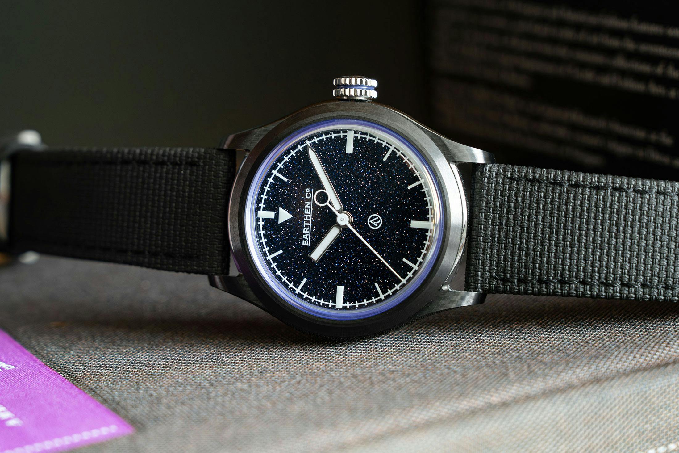 ダイヤルには人工のアベンチュリンガラスを用いているため、加工の際に非常に割れやすい。アーセン カンパニーの価格レンジで実現できているのは、快挙である。