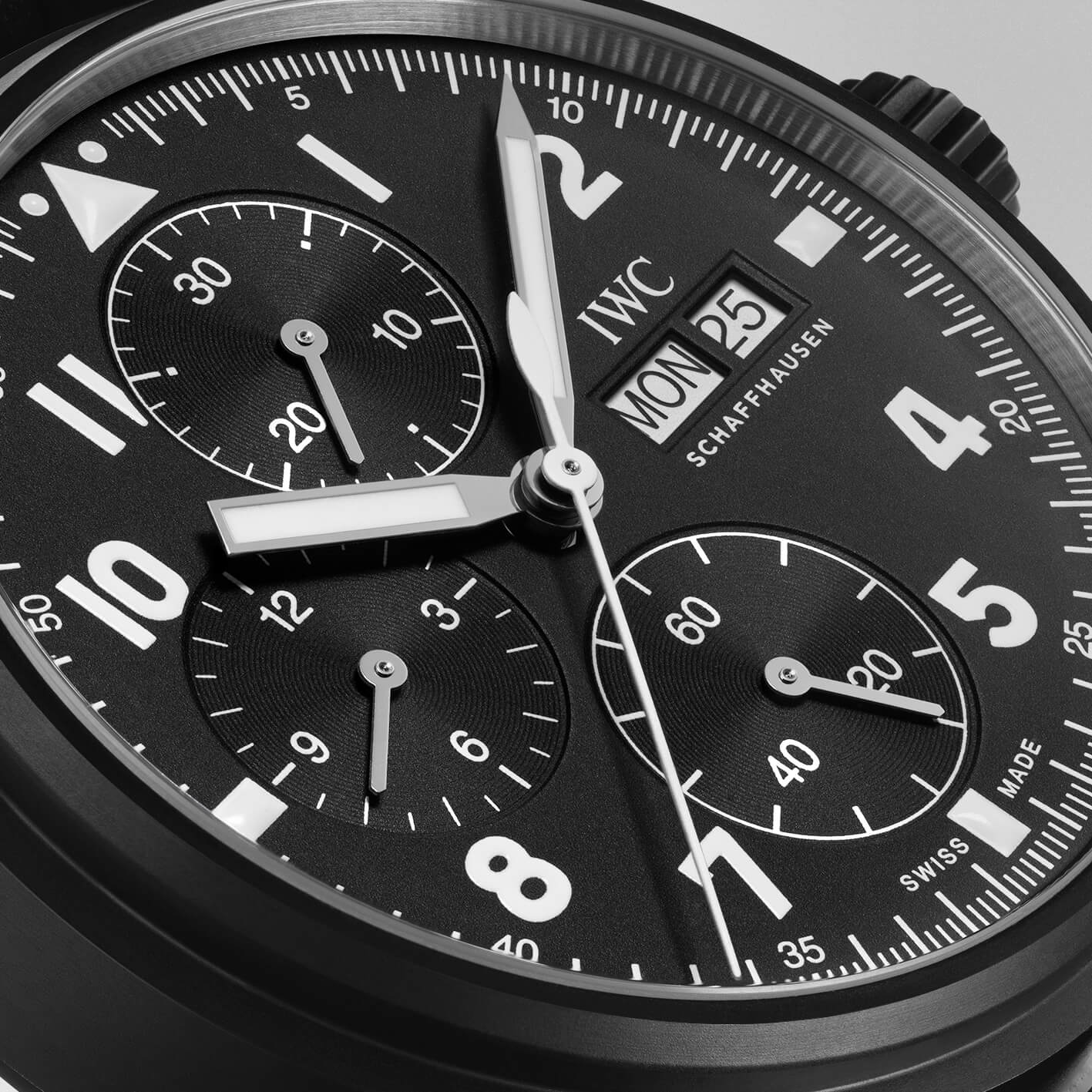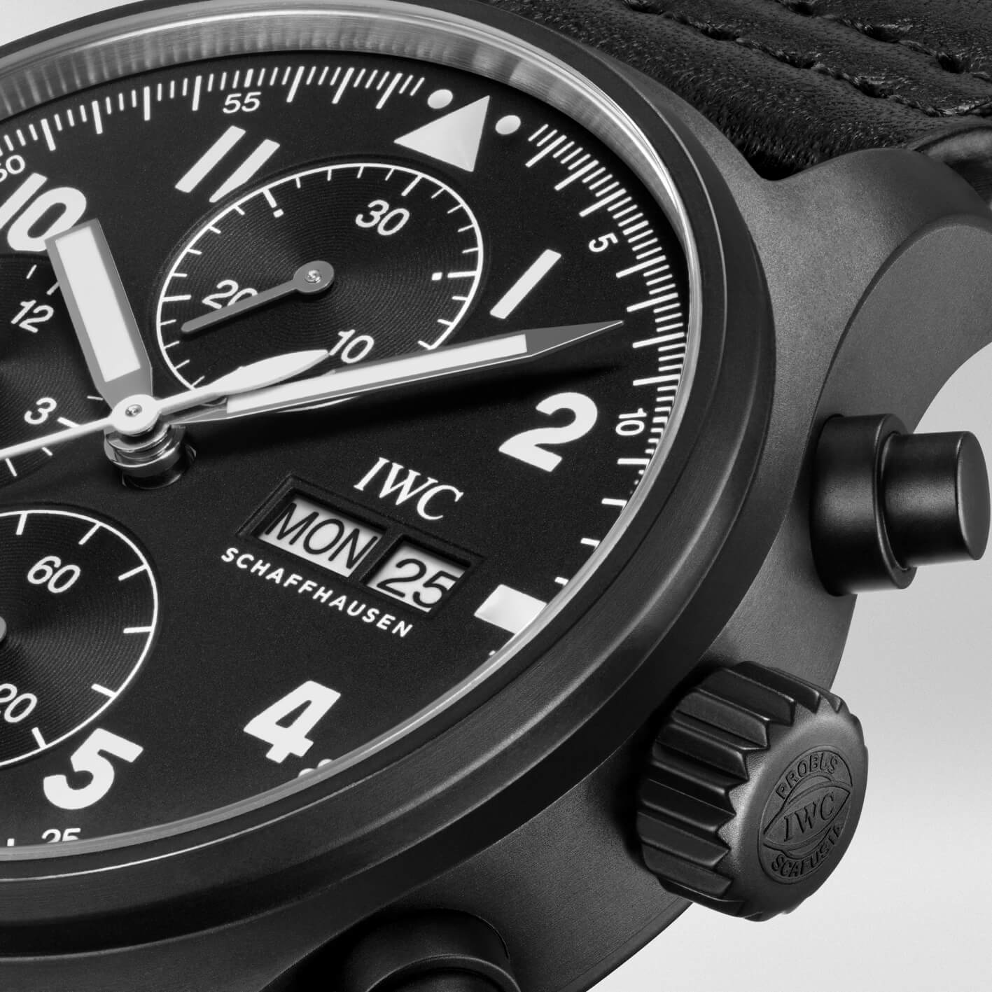 先日公開したHistorical Perspectivesの記事「フリーガークロノグラフ・ケラミック Ref.3705 希少な現代のIWCを振り返る」の中で、オリジナルモデルの特徴や詳細がまとめられている(前述のとおり、HODINKEEの記事もRef.3705が愛好家たちに注目されるようになったきっかけとしてひと役買っている)が、オリジナルのフリーガークロノグラフ・ケラミック(Ref.3705)と、新作のパイロット・ウォッチ・クロノグラフ「トリビュート・トゥ・3705」では、見るべきポイントは大きく2つある。