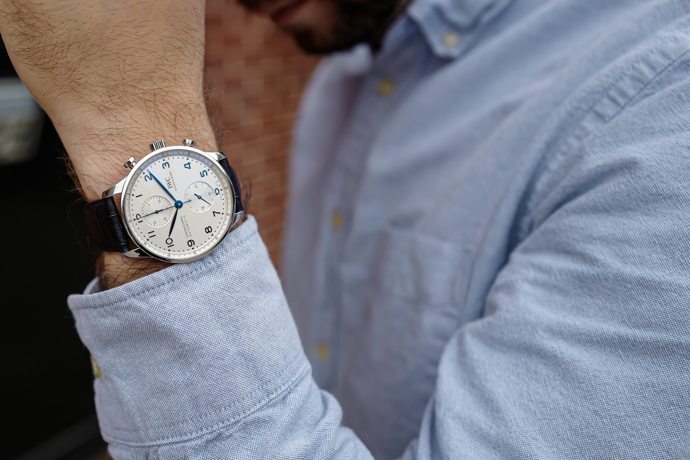 全体的に見て、大きいサイズにもかかわらず、IWCのポルトギーゼ クロノグラフは、特にレザーストラップの装着感に非常に優れる時計だ。実際、他のモデル(ゴールドのアクセントなど)が少し保守的な印象を与える中、このシルバーとブルーのバリエーションは、ラインナップの中で最も汎用性の高いモデルだと思う。この時計を身に着けると、このデザインがなぜこのような深遠な方法で時計界に浸透し、長い歴史を歩んできたのかをすぐに理解することができるだろう。