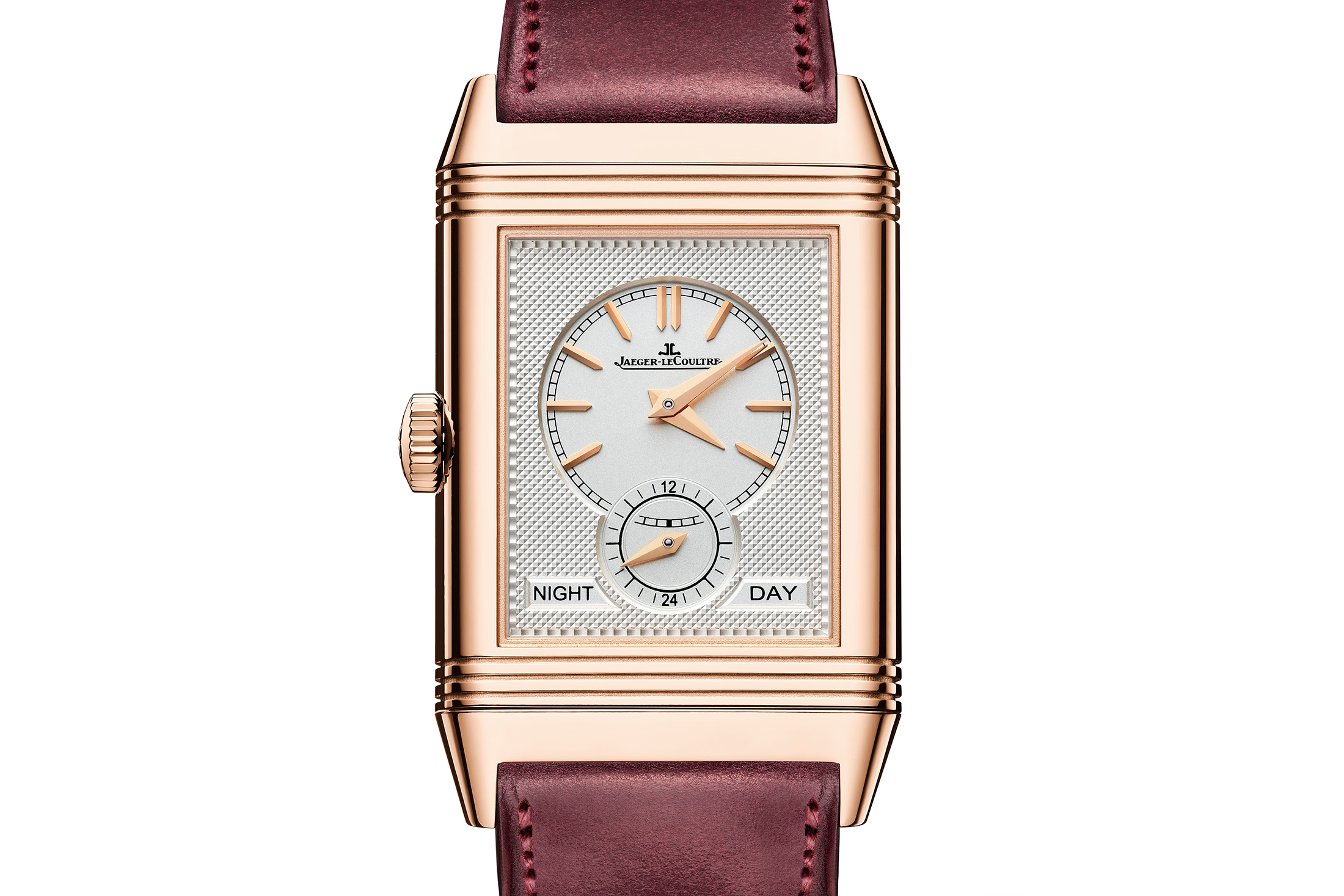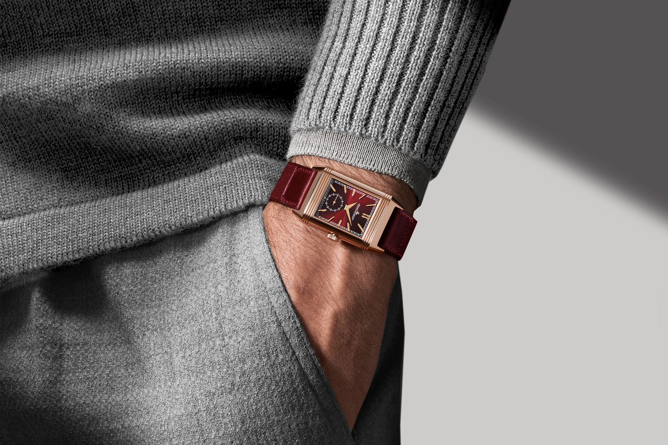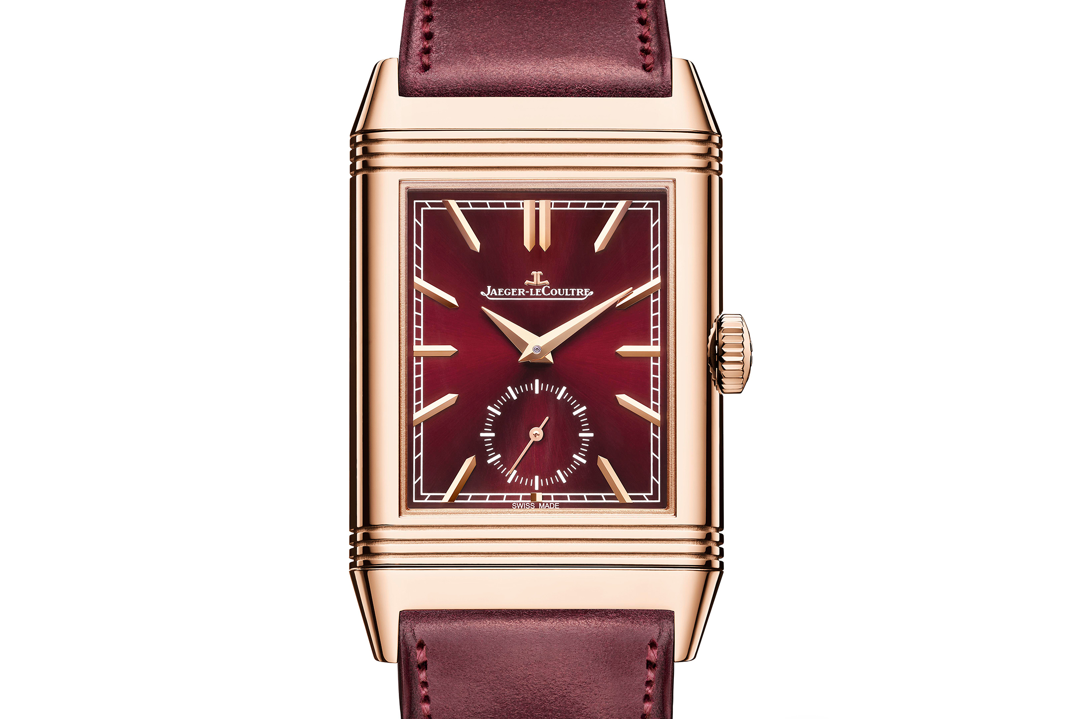 カーサ・ファリアーノとジャガー・ルクルトの初のコラボレーションモデルは、レベルソ 1931 U.S.リミテッドエディションだった。私は発売当時買わずにいて、以来後悔しているが、ここ20年で最も素晴らしいレベルソの1つだった。カーサ・ファリアーノとジャガー・ルクルトは、2017年にグレー/シルバーのダイヤルのデュオフェイスでコラボレーションしているが、今回は片面が鮮やかなバーガンディレッドのラッカーダイヤル、もう片面がクル・ド・パリ模様のシルバーダイヤルという、よりカラフルなデザインを選択している。