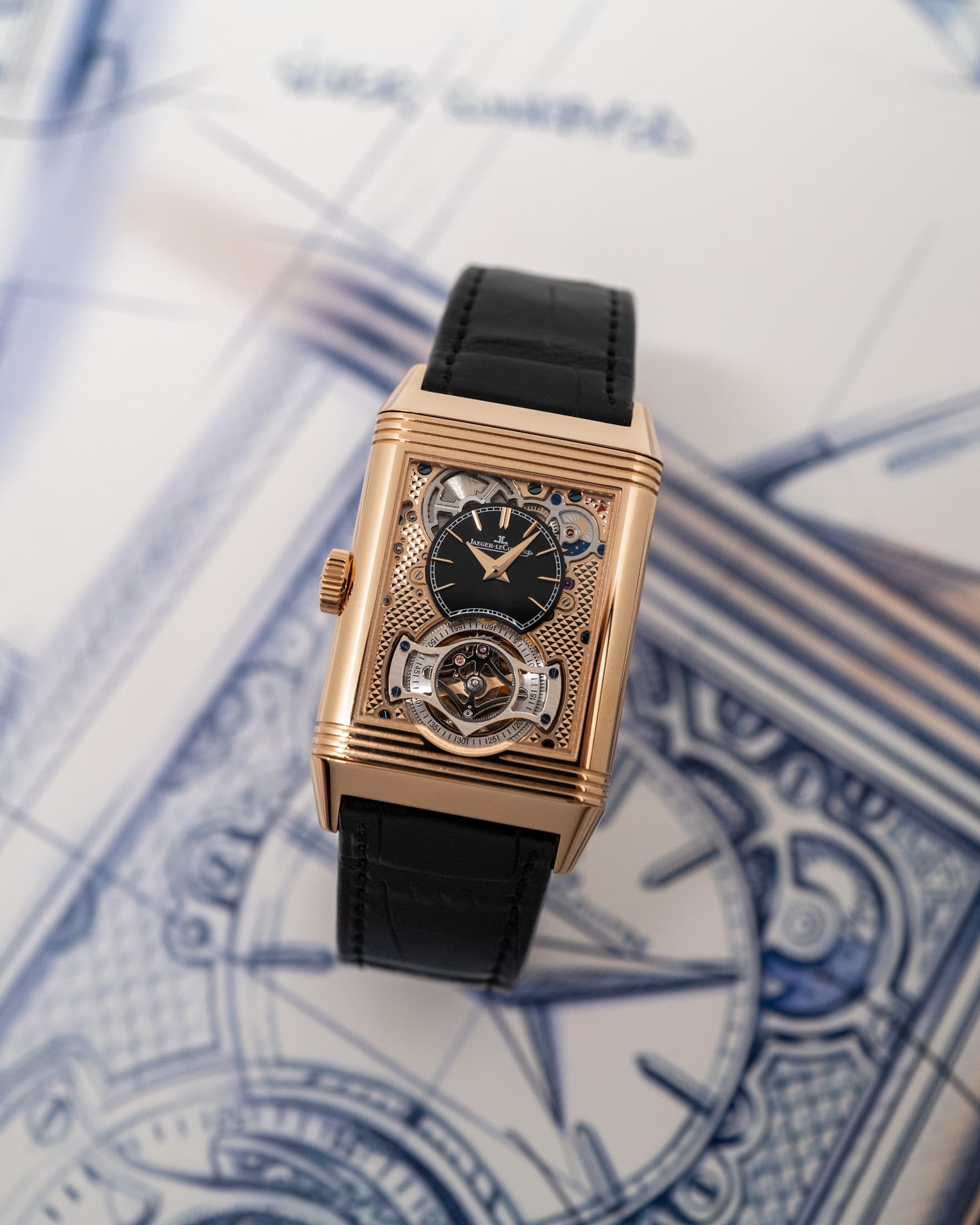 プレスリリースの画像には、ストライプが入ったブラックのスーツでドレスアップしたレニー氏の姿が映っている。そのシックなブラックスーツに映えるよう彼の腕に巻かれた、キラリと光るピンクゴールドでできた時計は、先日盛況のうちに終わったWatches&Wondersでジャガー・ルクルトが発表したばかりのレベルソ・トリビュート・デュオ・トゥールビヨンだ。自社製のCal.847を搭載した同モデルは、サンレイを施したシルバー文字盤を表に、ギヨシェ文字盤(セカンドタイムゾーンとデイ/ナイトインジケーター付き)を裏に配した、異なるふたつの文字盤を備えている。