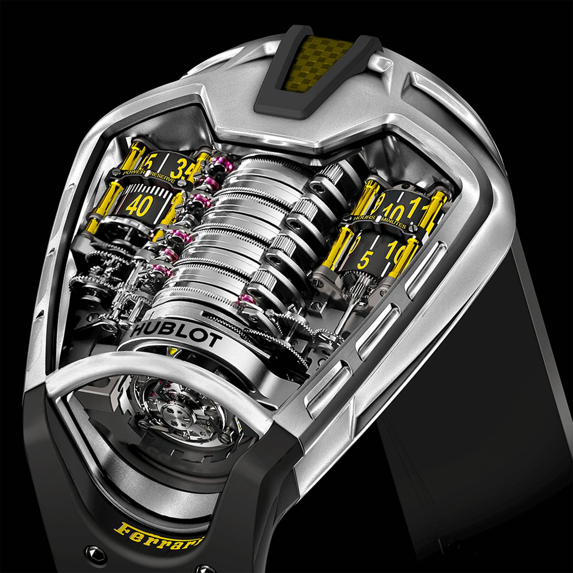 だからこそ、50日間のパワーリザーブを備えたウブロ “ラ・フェラーリ”は、(私にとって)彼らがこれまでに成し遂げたなかで最悪のものであり、史上最悪の1本であると言ってまったく差し障りない時計である。問題は、アルコール度数95%の“エバークリア”のダブルショットのような繊細さを持ち合わせる、大きくて派手なデザインだということではない。そのデザインが、想像しうる限りのありふれた時計デザインの集合体であることが問題なのだ。長方形の角張ったケースにダースベイダーのような幾何学デザインは、1970年代のランボルギーニ カウンタックのポスターを長時間見て「かっこいい」と思った10歳の子供に、かっこいい時計のデザインを頼んだときにできるような代物だ。この時計を見て、何かを感じなければならないような気がするが、全体のパッケージは、2014年にラ・フェラーリが登場した時点で、これまでに何度も見てきたアイデアの徹底的模倣であり、この時計を見るべき点はほとんどなく、ましてや何も感じることはない。しかし、ある点では大成功を収めている。それは、時計製造史のなかで最も派生的なデザインであるということだ。