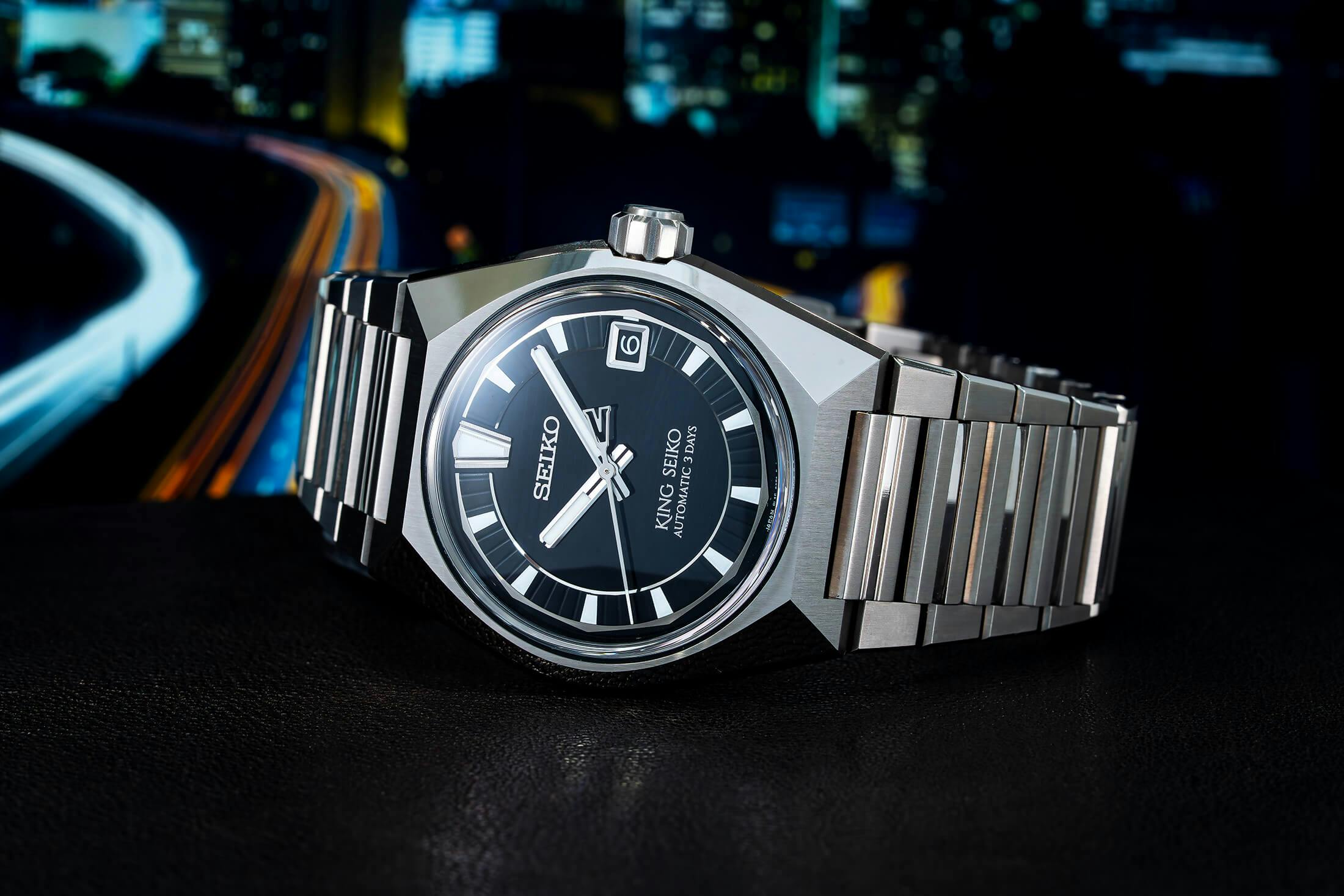そのダイヤルカラーもドライバーの目に映る情景に着想を得たものだといい、薄明の地平線を表現したパープル、無機質で都会的な高速道路の構造美をイメージしたグレー、そして夜の東京をクルマで駆け抜ける疾走感を表したブラックの3色が用意された。