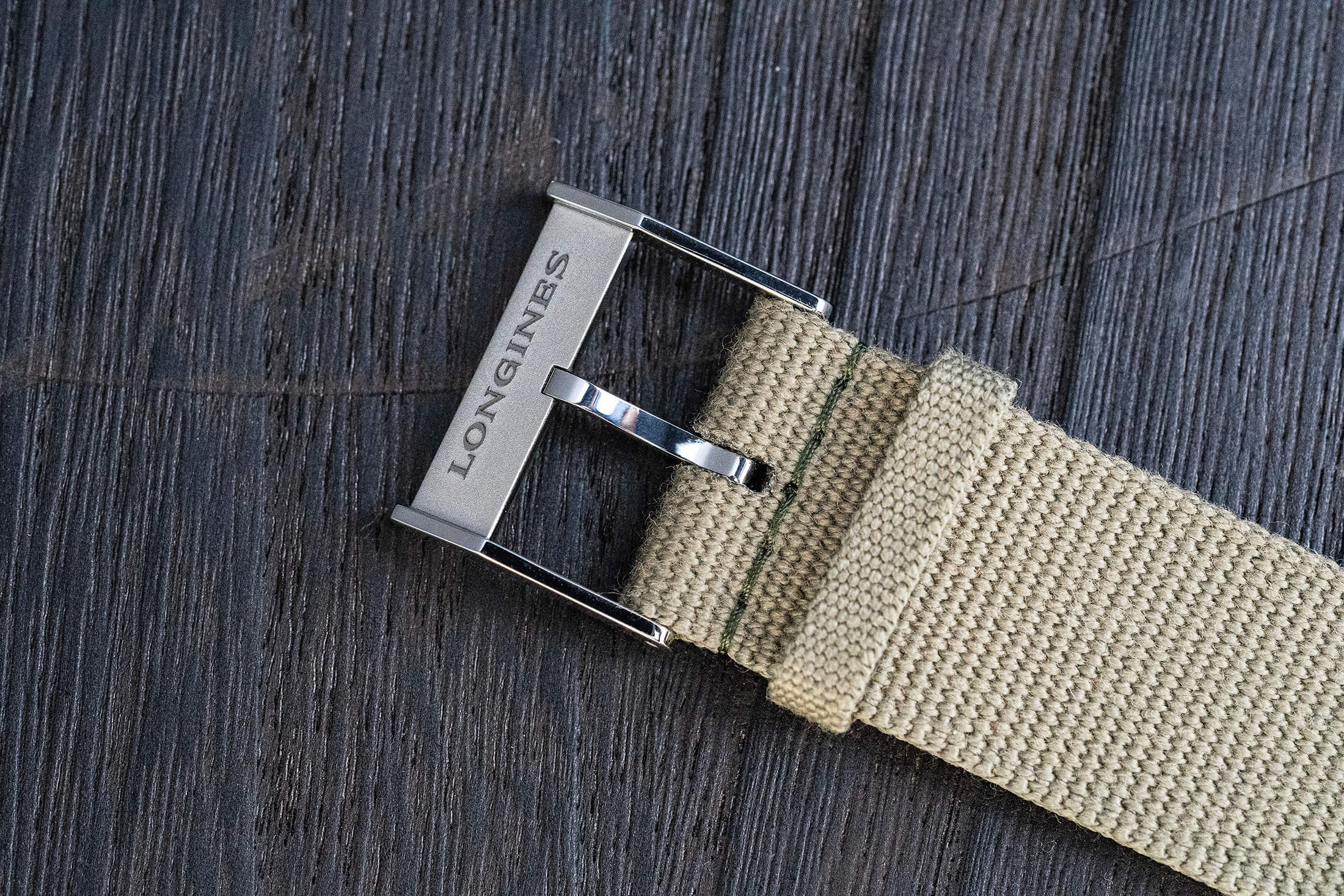 ロンジン パイロット マジェテックは、ベージュのトップステッチをサイドに施したブラウンのレザーストラップを基本とするが、初回のスペシャルボックスにはリサイクル素材のポリエステルファイバーを使用したNATOタイプストラップも付属(バネ棒外しも同梱)するため、ストラップを付け換えてふたつのスタイルでつけることができる。なお、初回のスペシャルボックス以降は、レザーストラップ仕様はRef.L2.838.4.53.0として、NATOストラップ仕様はRef.L2.838.4.53.8として、それぞれ販売されるようだ。