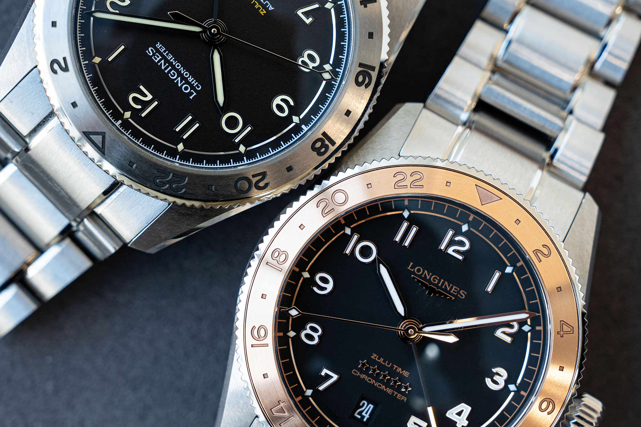 上が2023年に発表されたロンジン スピリット Zulu TimeのHODINKEE限定モデル。