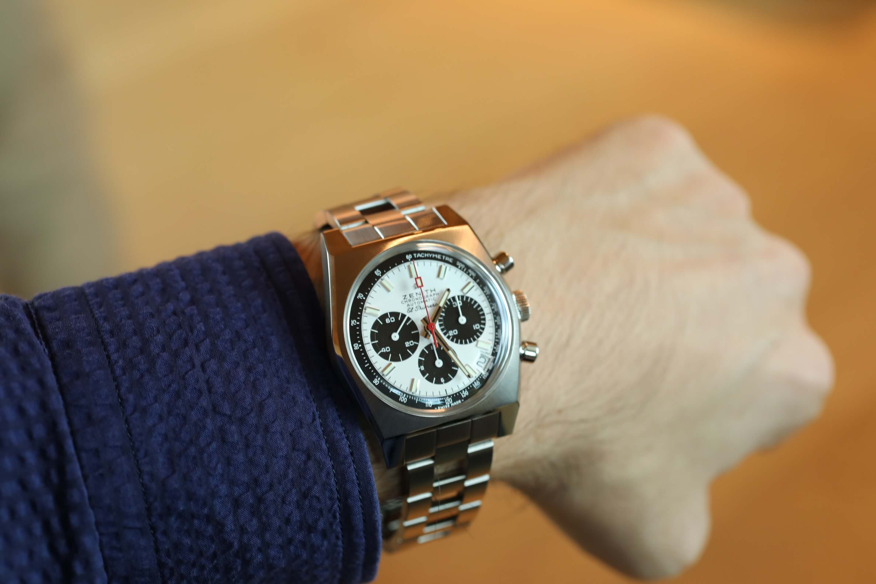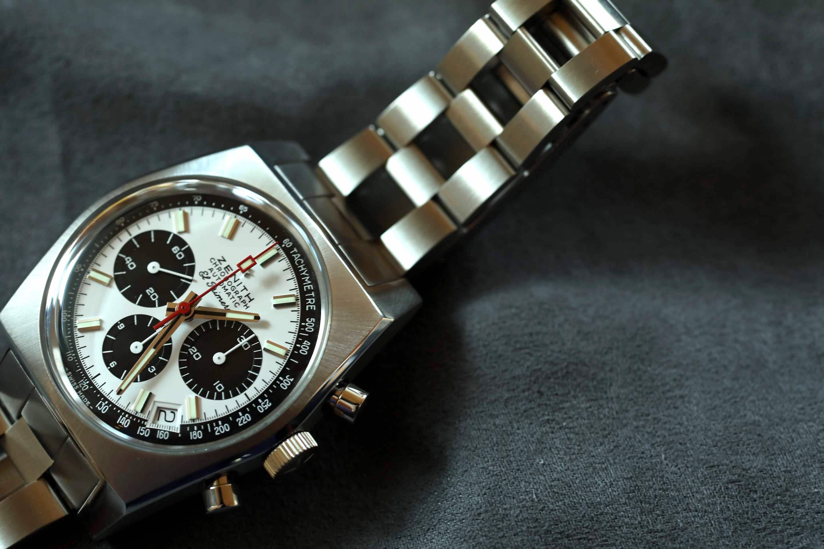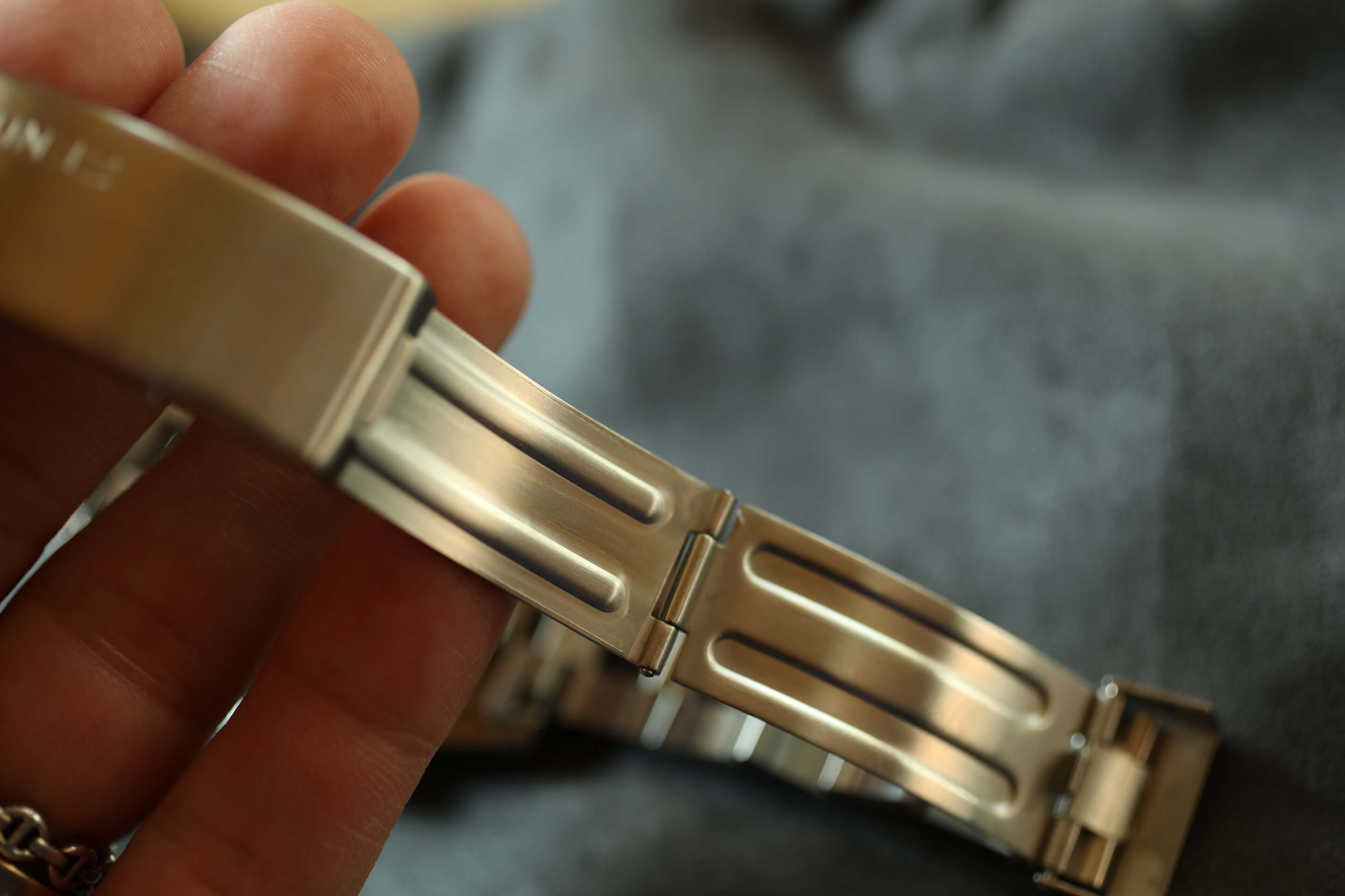 先日、ウブロがビッグ・バンを引っ提げて、ブレスレット戦争に参入したという記事を書いたが、ゼニスはその界隈で新しい視点を加えたのではないだろうか。現代のブレスレットは、耐久性や着け心地に優れ、貴金属としての重厚感や美しさを兼ね備えることが最適解とされている。しかし、このA384に搭載されたブレスレットはその理想からはとてもかけ離れたものである。ただ、とても軽量で、古くないのに懐かしい着け心地を提供している。これは、人気のモデルが一極集中する傾向にある今の時計業界において、ちょっとした気付きになると思う。着け心地という感じ方に個人差のある曖昧なものに、色々なアプローチでその感触の違いが生まれると楽しそうだ。