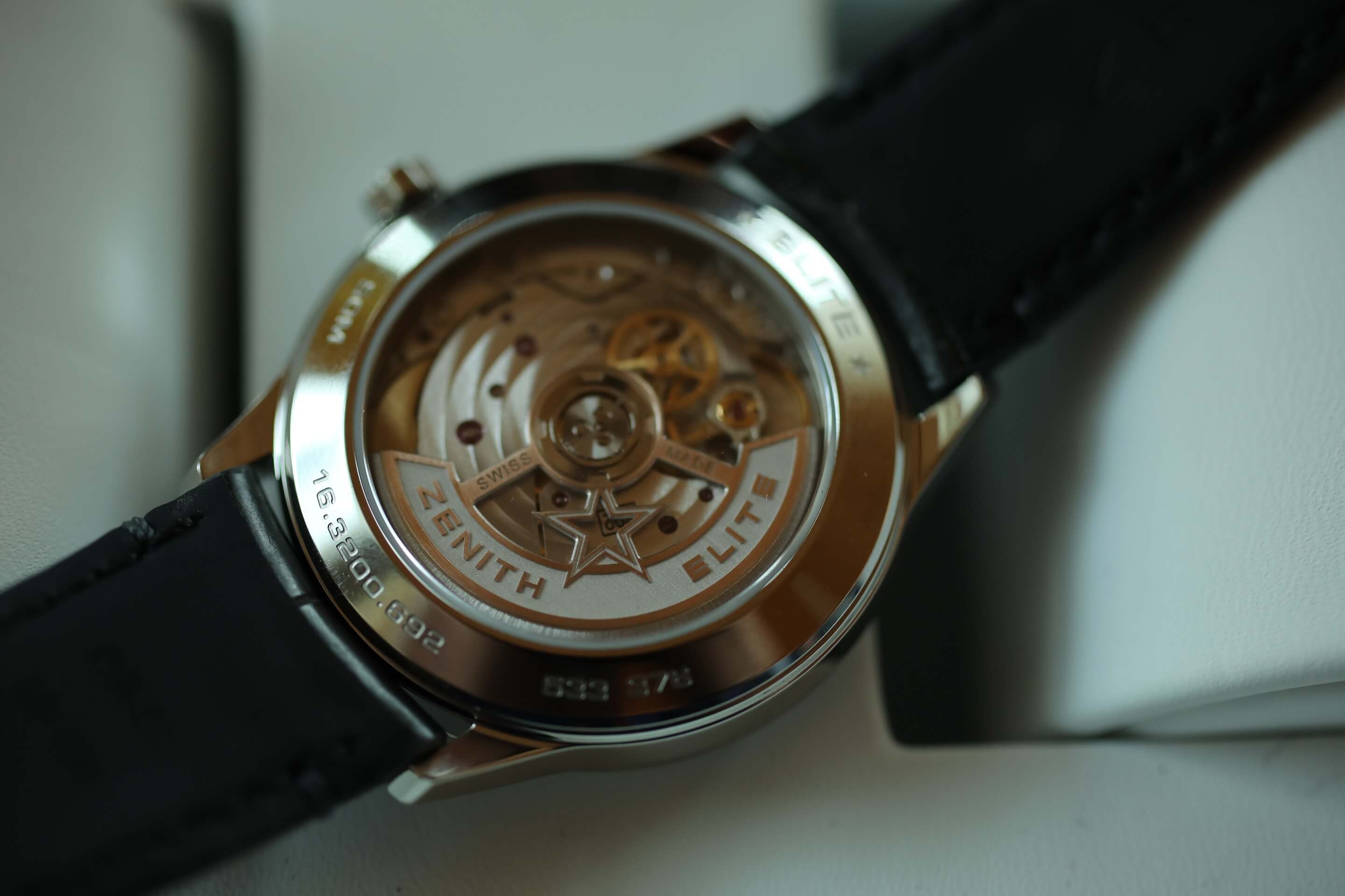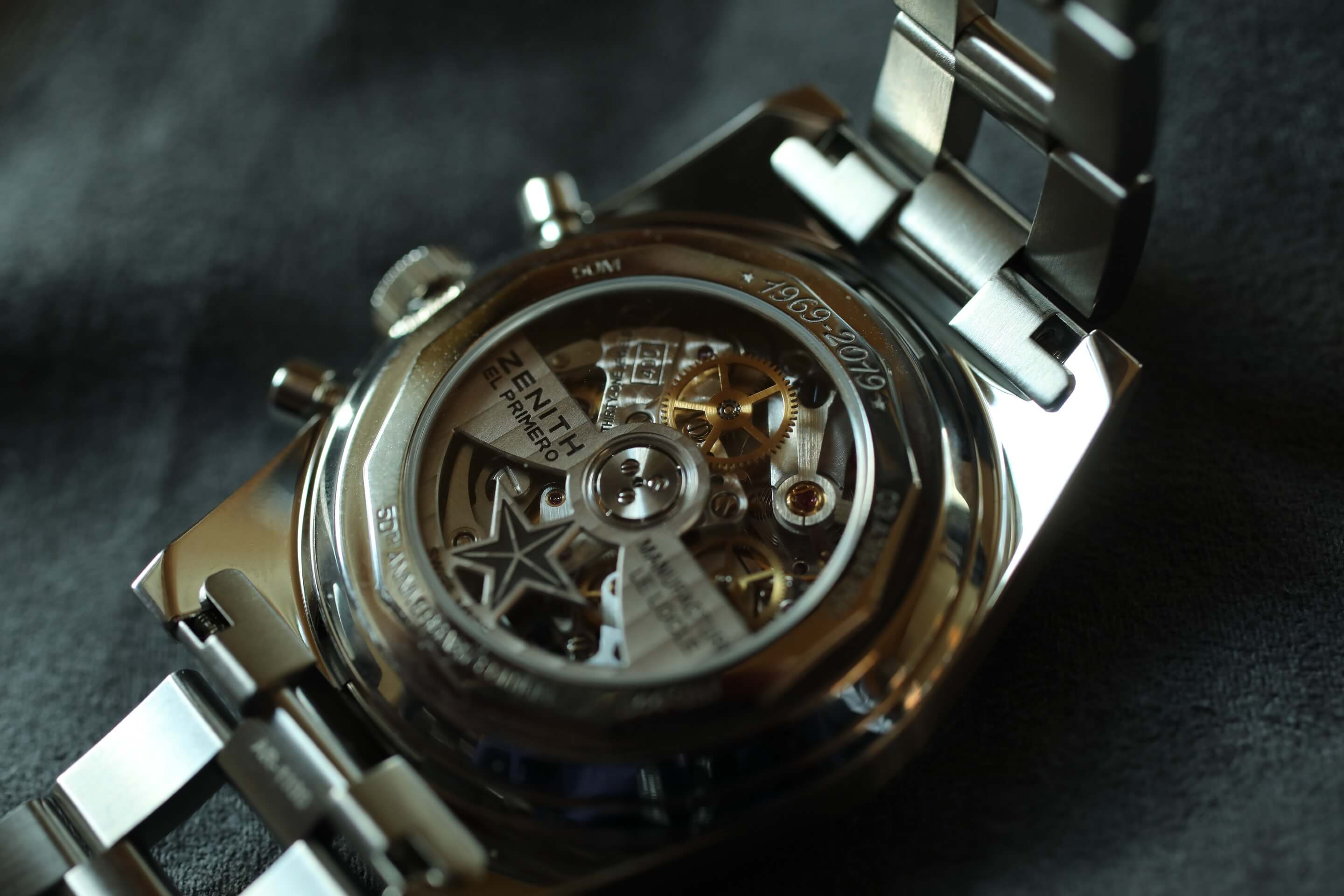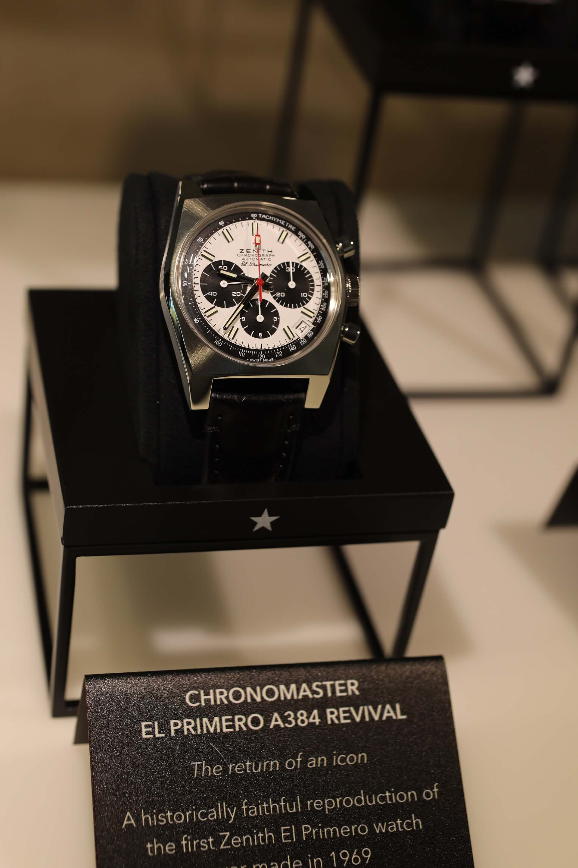 さて、上写真のエル・プリメロ A384リバイバルは厳密には新作ではない。昨年、リバース・エンジニアリングを駆使して復刻されたモデルのブレスレットタイプである。見て分かるように、現代の時計にはあまり見られない、中ゴマの空いたデザインが採用されている。これも件のリバース・エンジニアリングによって、当時のブレスを忠実に再現したものだ。37mmの小ぶりなケースにフィットしてかなり軽快な組み合わせとなっており、ゼニスは当時の着け心地まで再現したのだと思わされる。