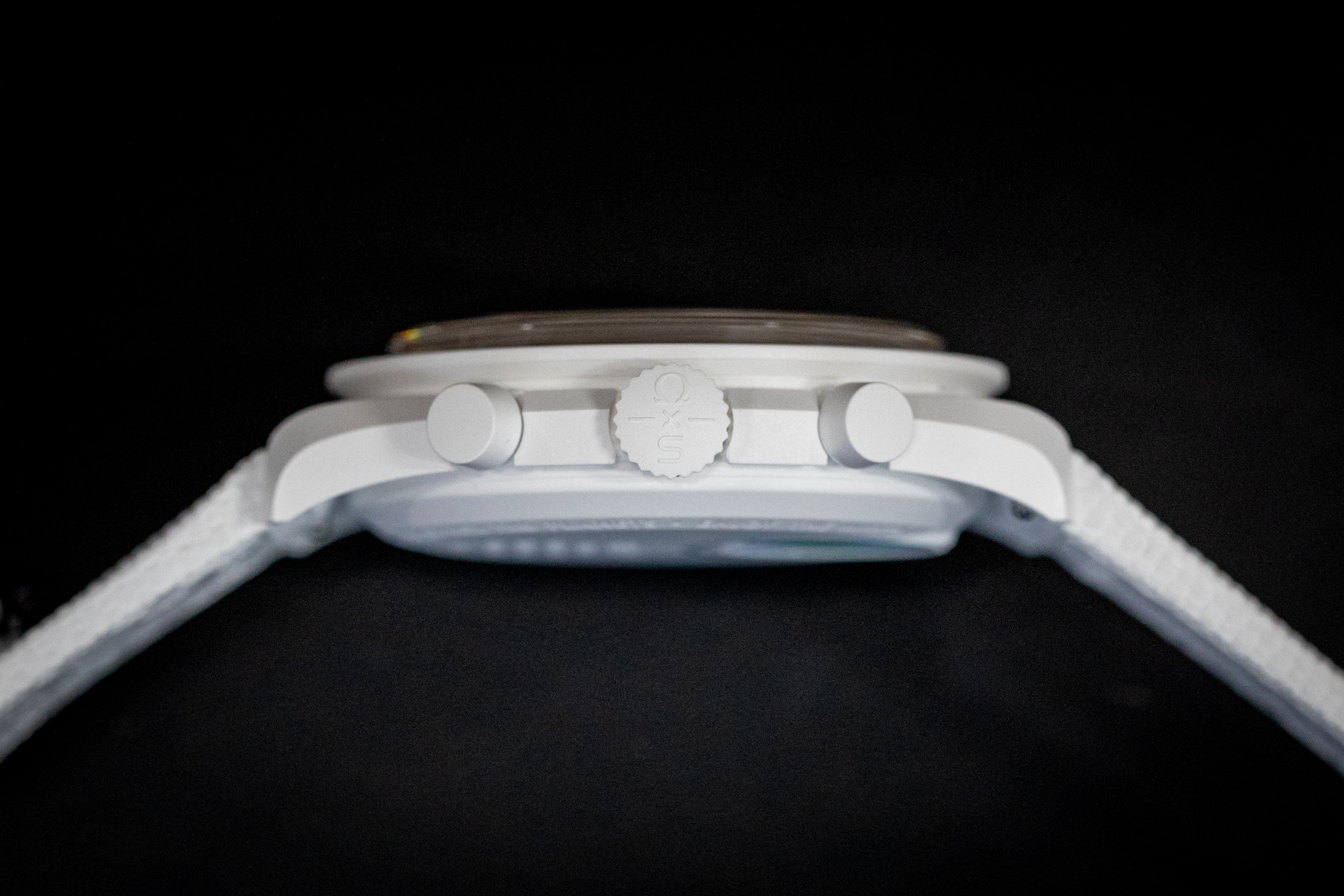 2024年3月に、最初のミッション トゥ ザ ムーンフェイズが出たとき、正直かなり欲しいと思った。私はスヌーピーが好きだし、ムーンスウォッチは当時すごく話題だった。とはいえその後は時間が空いてしまい、気づけば発売直後の熱も落ち着いていた。だから今回この新作を見た瞬間、これだと思った。あのとき引かれた真っ白いムーンスウォッチスヌーピーが、今度は冬仕様で戻ってきたように感じたのである。