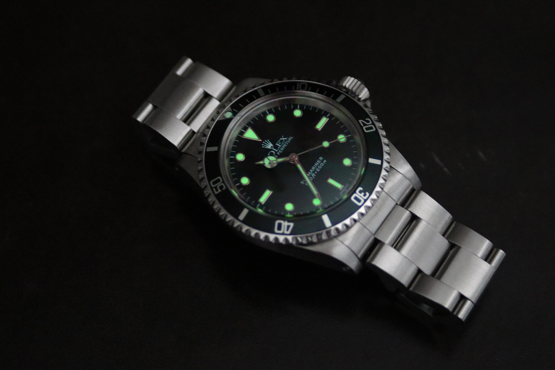 私のサブマリーナーとの最初の思い出の1つは、父のものとは違って、夜光が機能するのを知ったことだ。シャークウォッチの思い出がよみがえってきた。レストアの際、従来のトリチウムの代わってスーパールミノバを満たしたマーカーが、ダイヤルを装飾するよう設置されていた。時が経つにつれ、私はこのことを父に自慢し、私の時計の方が優れているとよく言ったものだ。