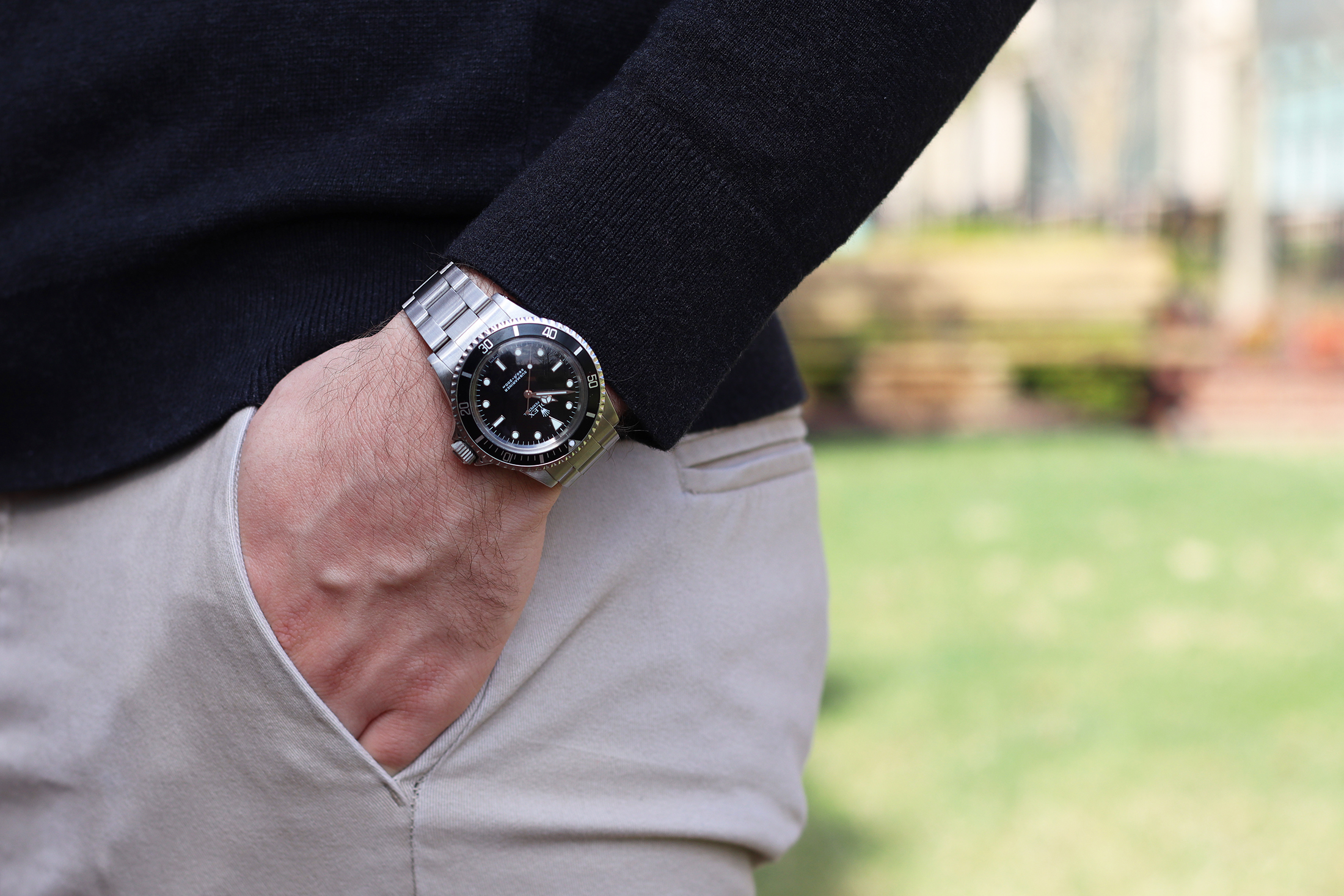 今でも祖父のタイメックスを時々眺め、手首に着けては祖父を思い出す。それが自分の手首に巻かれると、何年も前のあのつらい夜の記憶が波のように押し寄せてくる。それから、私のサブマリーナーに目をやり、2つをつなぐ物語を想う。そしてそれ以上に、自分がこの物語で果たした役割について考える。何かを特別なものにしているものを見失うのは簡単だ。時計愛好家の世界に深く入り込むと、サブマリーナーがどれほど一般的な時計か、誰もがそれを所有しているというつぶやきを聞くようになるだろう。でも、この時計はそうではない。これは私のもので、これは特別なものなのだ。