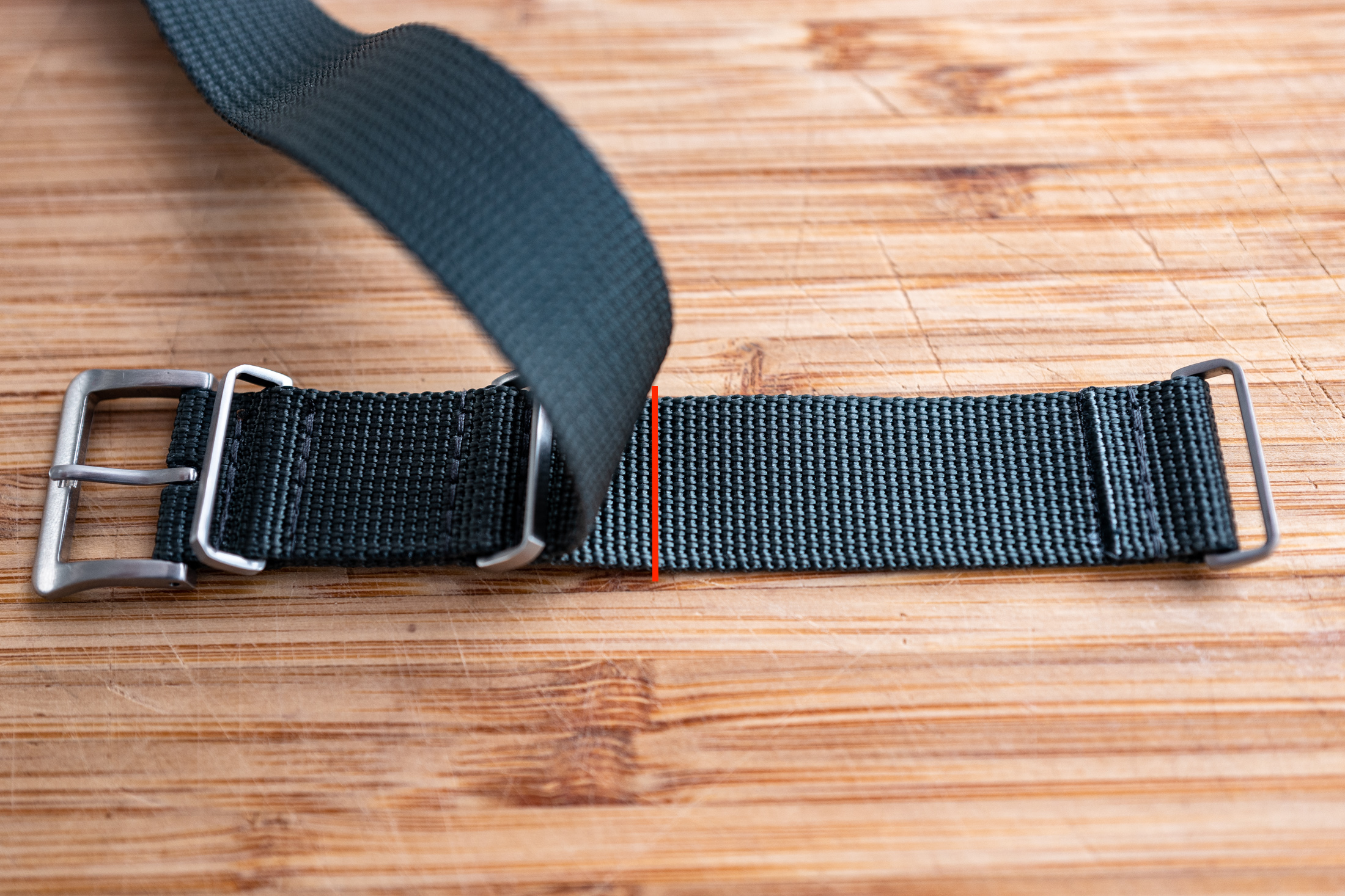 僕のように、手首を抱きしめるような時計が好きなら、アンダーキーパーはカットするべきだろう。もし僕とは違って、あなたが厚みのあるNATOストラップを好む場合、今回こそが"ダイエット"NATOストラップを味わうチャンスだ。ハサミを掴み、縫い目の近いところで、アンダーキーパーをカットしよう。うまくできたら、その部分の擦り切れを防ぐために、ライターを柔らかい生地の端に当てることで、軽くエッジを溶かし、施術は終了だ。あとは、好みの腕時計に痩せたNATOストラップを通して、余分な厚みが無くなった軽快感を楽しむだけだ。