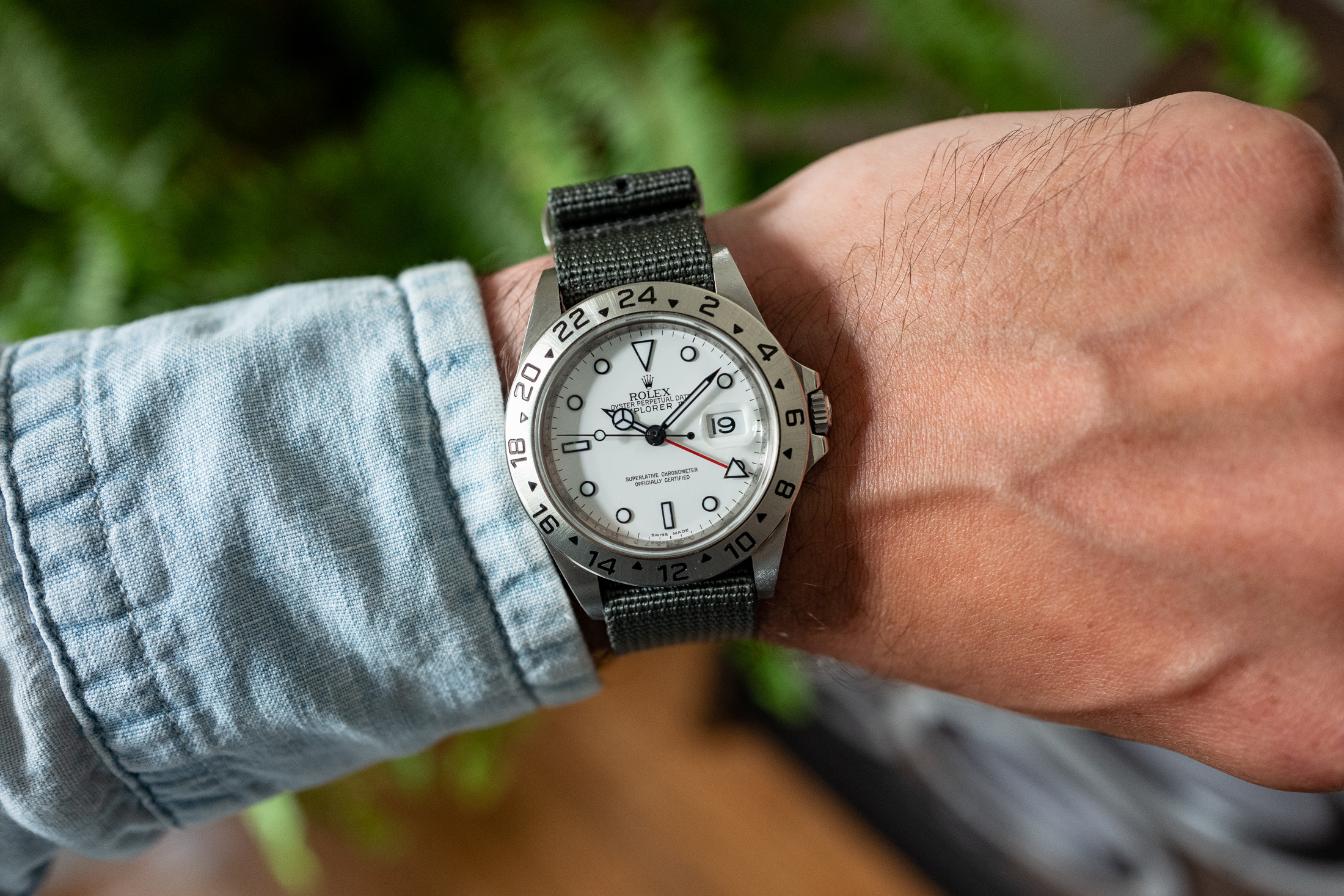スティーブンの愛機・IWCに付いていたナイロンストラップには、余分な厚みがあったから、着け心地があまりよくなかった。