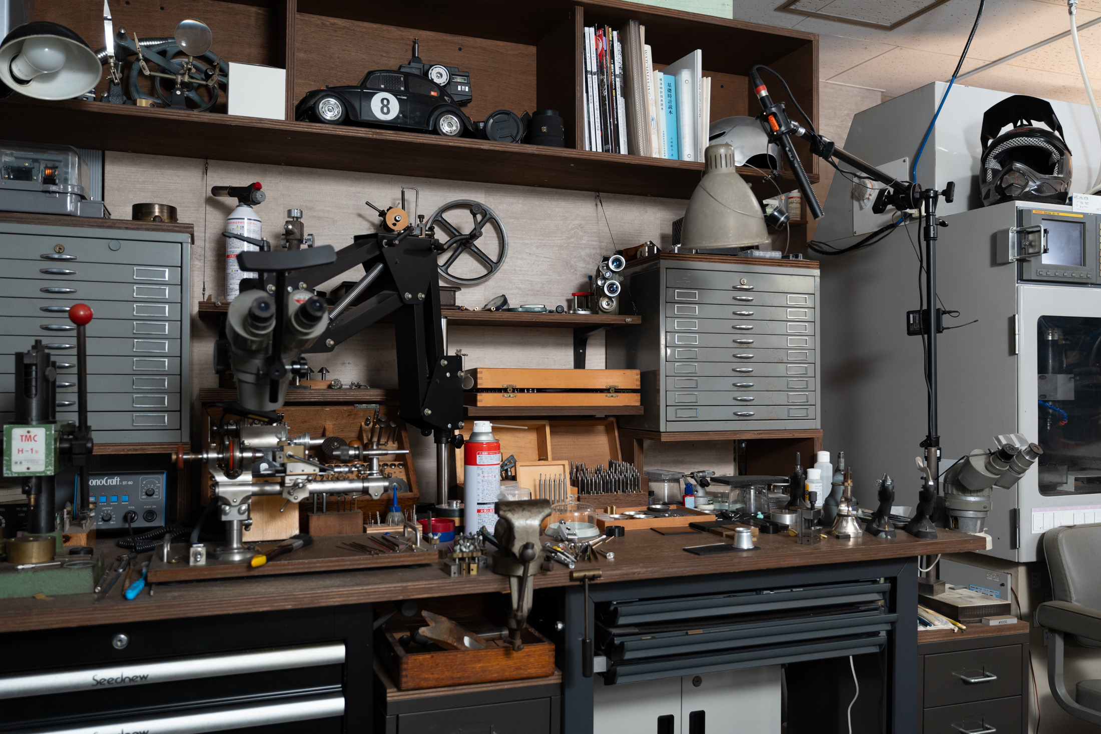 片山氏のアトリエの作業デスクの上にはラジコンが置かれていた。