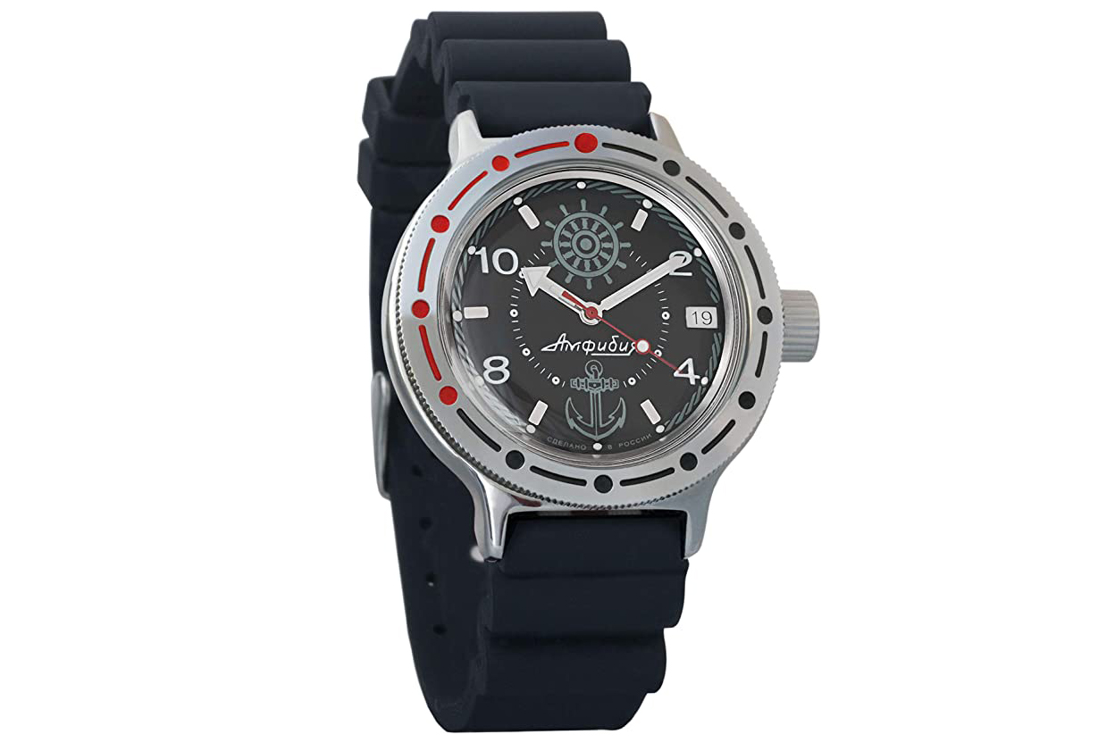 この話をしたのは、彼の飾り気のないスタイルがこの映画に反映されているからだ。船とドキュメンタリー映画のクルー双方のキャプテンであり指揮官であるズィスーだが、腕時計に関してはクストーの真似はしない。ロレックスもドクサでもない。代わりに彼が選んだのはダイバーズスタイルのラバーストラップをつけた、滑稽なほど安価なロシア製の時計だ。それがボストークのアンフィビアであることは、すでに多くの人が知っていることだろう。