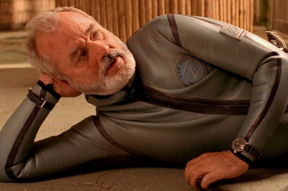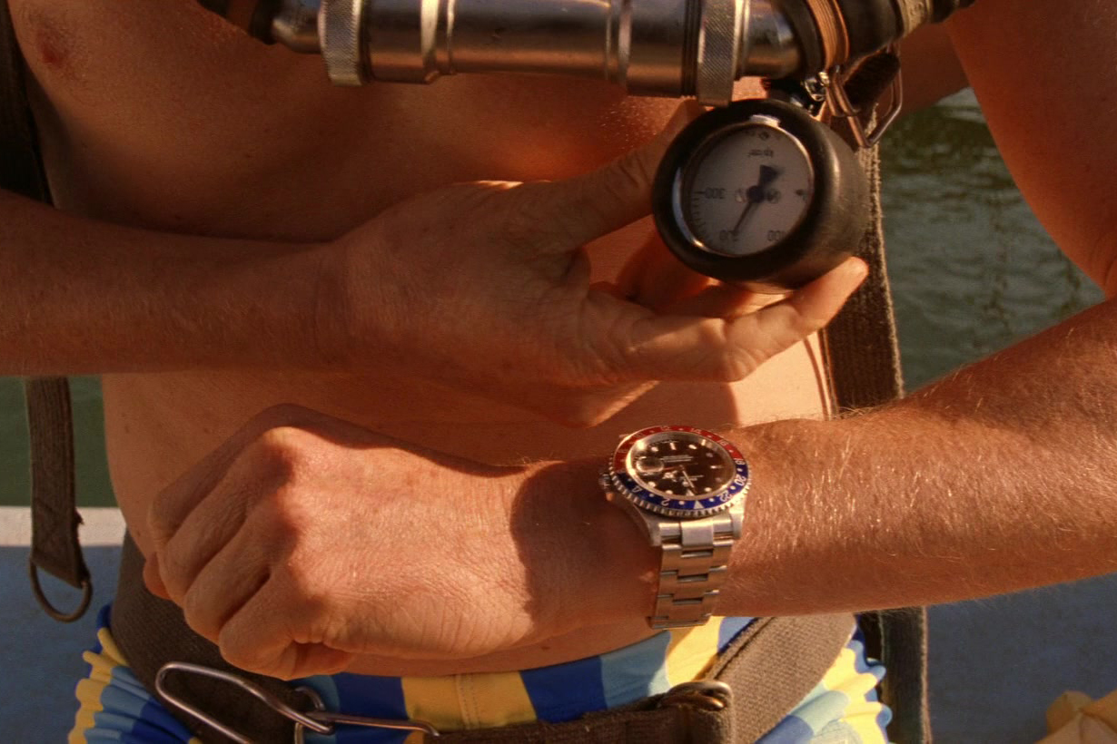 アンダーソンならではのモンタージュで、ズィスーのクルーがエアロビクス、ビーチランニング、爆発物のトレーニング、上半身裸での読書、スキューバダイビングなどのトレーニングを始める様子が映し出される。ディーヴォ(Devo)の「ガット・フィーリング(Gut Feeling)」という曲が流れるなか、酸素ボンベを背負ったネッドが手首のGMTマスターIIを確認している姿が映し出される[00:37:18]。その際、カメラが時計を強烈にクローズアップ。スキューバマスクを顔に装着するウィルソンの腕にもカメラが追随し、ブレスレットとクラスプもきれいに写っている。もちろん、しばらくして彼は地面に倒れて心肺蘇生法を必要としているのがわかり(彼は生き残るのでご心配なく)、カメラは時計の別のすばらしいショットを再び提供してくれる[00:37:50]。